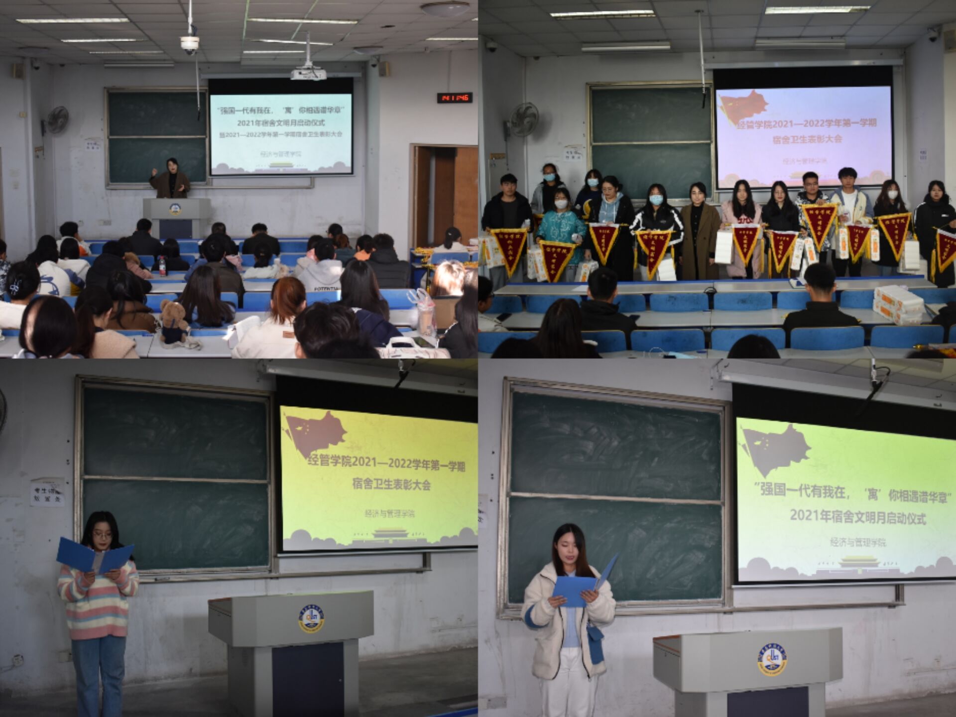 为贯彻落实党的十九届六中全会精神,坚定“四个自信”、增强“四个意识”,充分认识党的百年奋斗的历史意义和“十个坚持”的历史经验,切实把会议精神贯彻到推动校园守正创新、爱国爱党的文化建设中,塑造明亮清雅的宿舍环境,展现ylzzcom永利总站同心同德风气,增强经管学子成为时代先锋、民族脊梁理想信念,11月30日,ylzzcom永利总站于弘毅楼E303教室举行“强国一代有我在,‘寓’你相遇谱华章”宿舍文化月启动仪式。