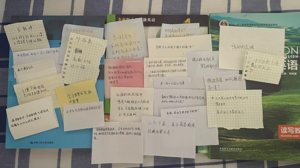 初入大学,同学们尚处过渡期阶段,对老员工活抱有困惑,对未来四年存有迷茫。据此,物流管理专业全体同学积极参与学院组织的“锦囊妙语墙”主题活动。在各宿舍长带领下,同学们在便签纸上写下了自己在专业学习、日常生活、未来规划与发展等方面的疑问,邀请学院老师及辅导员挑选问题进行解答。师生间的情谊通过白纸黑字紧密地联系在了一起。