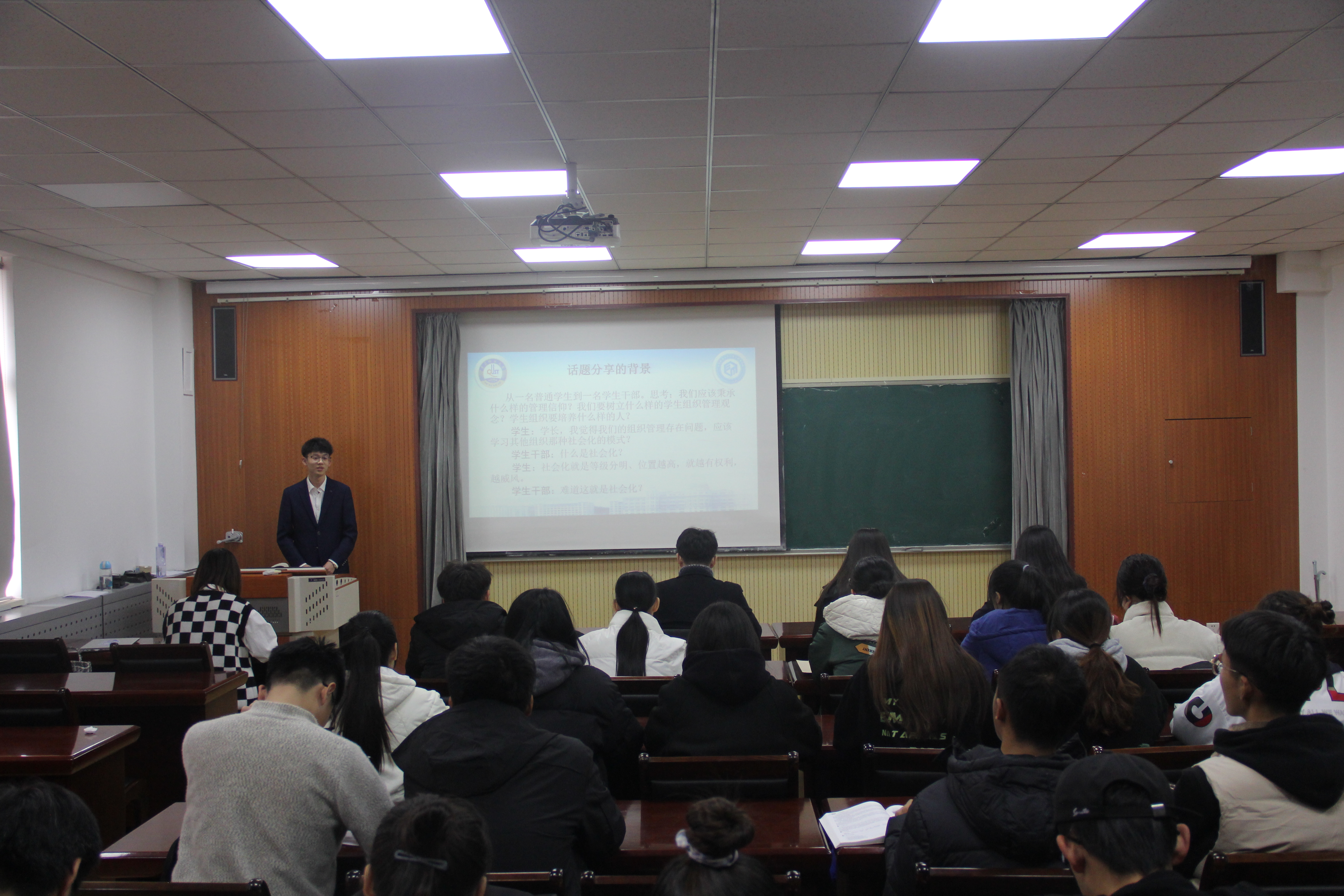 袁欣汝同学对志愿公益服务这一方面分享了自己的感悟和看法。从志愿服务理念和知识,到起源与发展,到如何对志愿者的组织与管理进行了深入浅出的分享。以“有一件事是可以做一辈子的,那就是志愿者”这样的感悟总结志愿服务的意义。