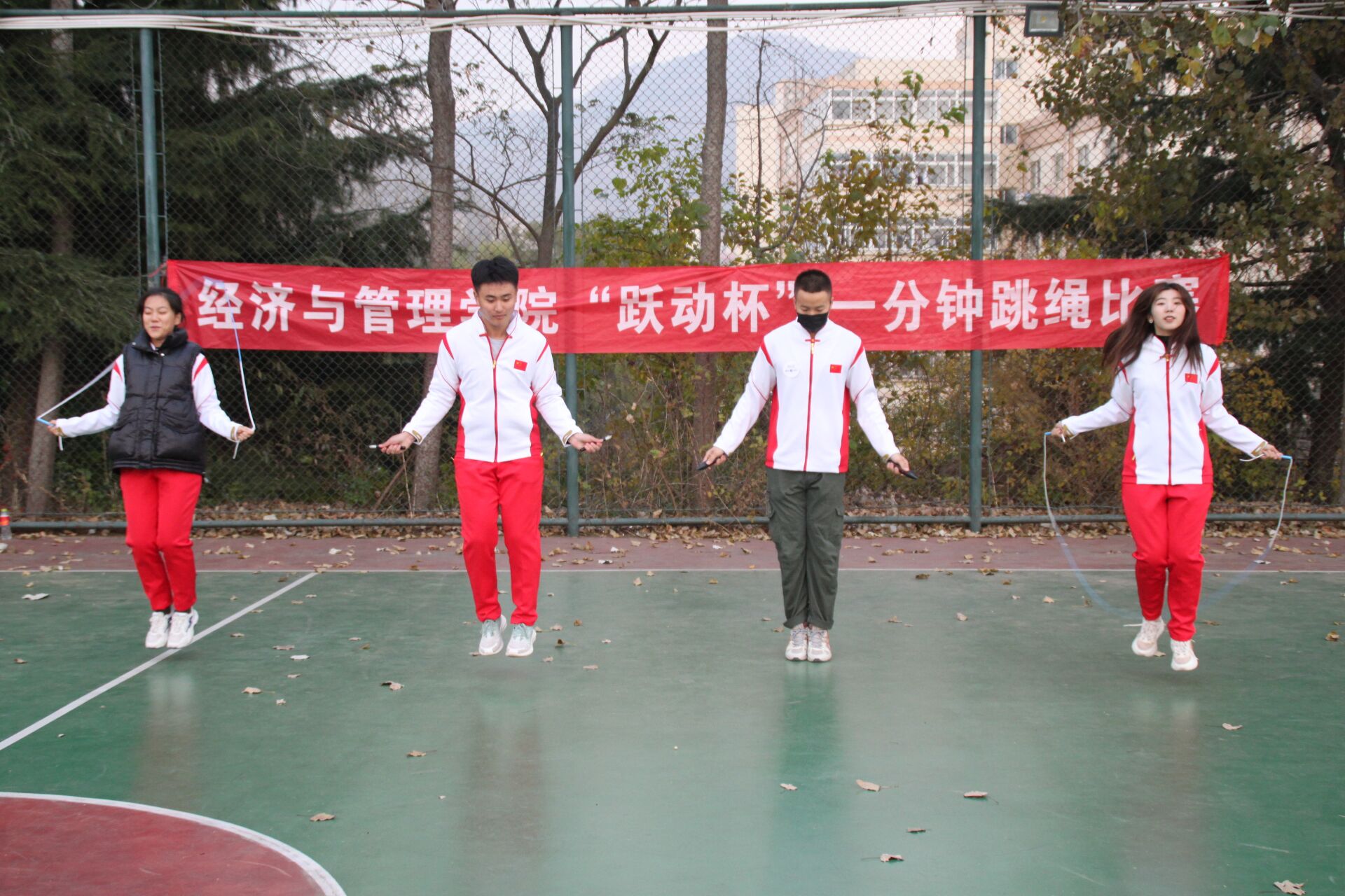 无论是短绳个人赛,还是比赛结束后的长绳团体展示和花样跳绳展示,同学们个个情绪高涨,全身心投入到活动中,赛出了风采,赛出了激情。经过激烈的角逐,物流张舜益以一分钟326个的好成绩取得本次的比赛第一名,国贸谢嘉楠以一分钟287个取得本次比赛第二名。