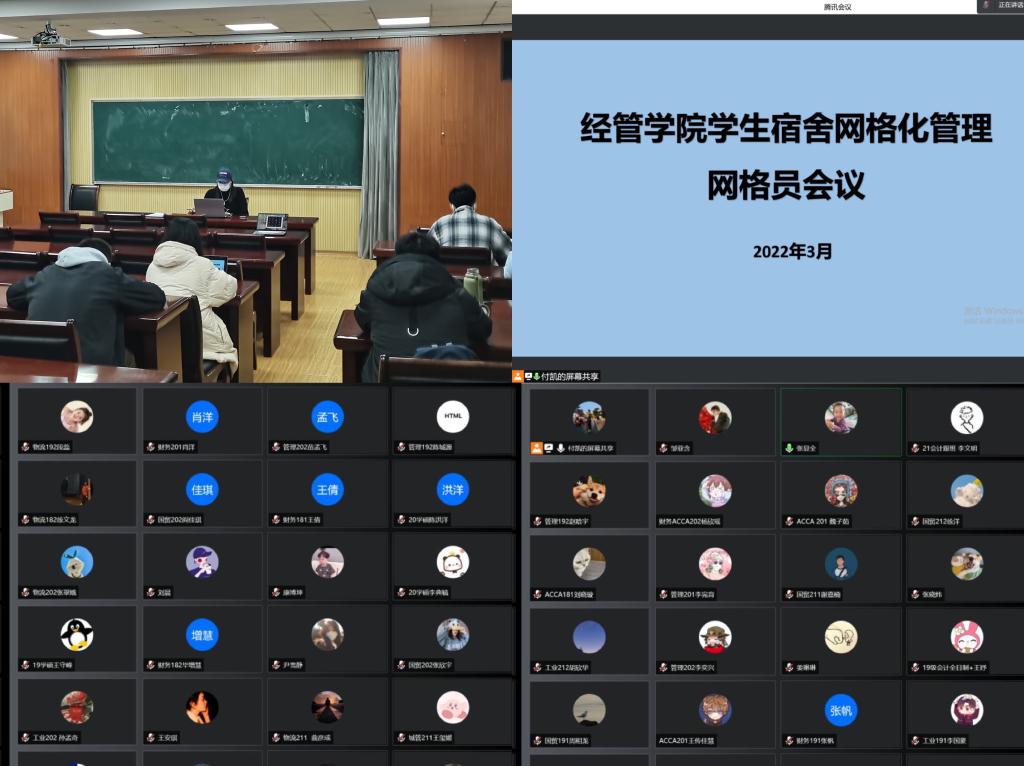 为全面贯彻落实上级部门和学校关于疫情防控工作的具体要求,ylzzcom永利总站坚持将员工安全健康放在第一位,灵活用好宿舍阵地,深入推进宿舍网格化管理,不断提升精准防控水平。3月22日晚,学院通过线上线下相结合的方式,于经管楼419会议室召开宿舍网格员线上会议,进一步落实疫情防控各项措施,员工宿舍所有楼长、楼层长及各年级专兼职辅导员参会。