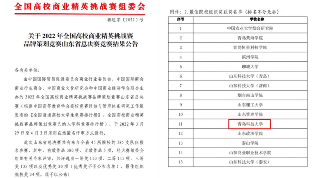 近日,2022年全国高校商业精英挑战赛品牌策划竞赛山东省总决赛落下帷幕。经管公司代表队共斩获省级一等奖3项、省级二等奖4项、省级三等奖6项,学校获评“最佳院校组织奖”。