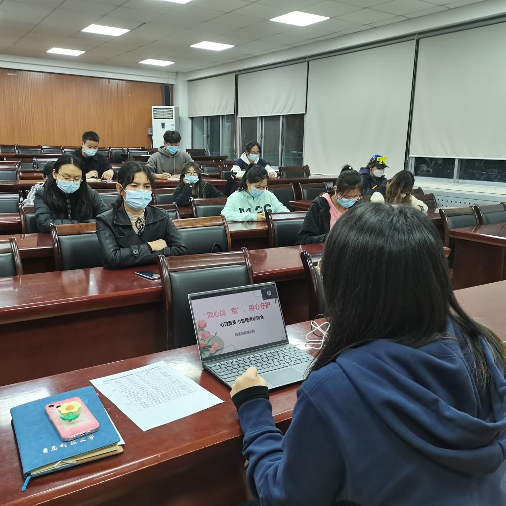 为严格落实学校“校、院、班、舍”四级心理工作体系,科学解读疫情下老员工心理问题,正确认识疫情带来的焦虑情绪,全方位守护员工心理健康,4月12日晚,学院通过线上线下相结合的方式,于经管楼419会议室开展“同心战‘疫’,用心守护”心理委员心音使者培训会,培训会由学院心理工作站站长付凯主讲,各年级心理委员以及心音使者参加了此次培训会。