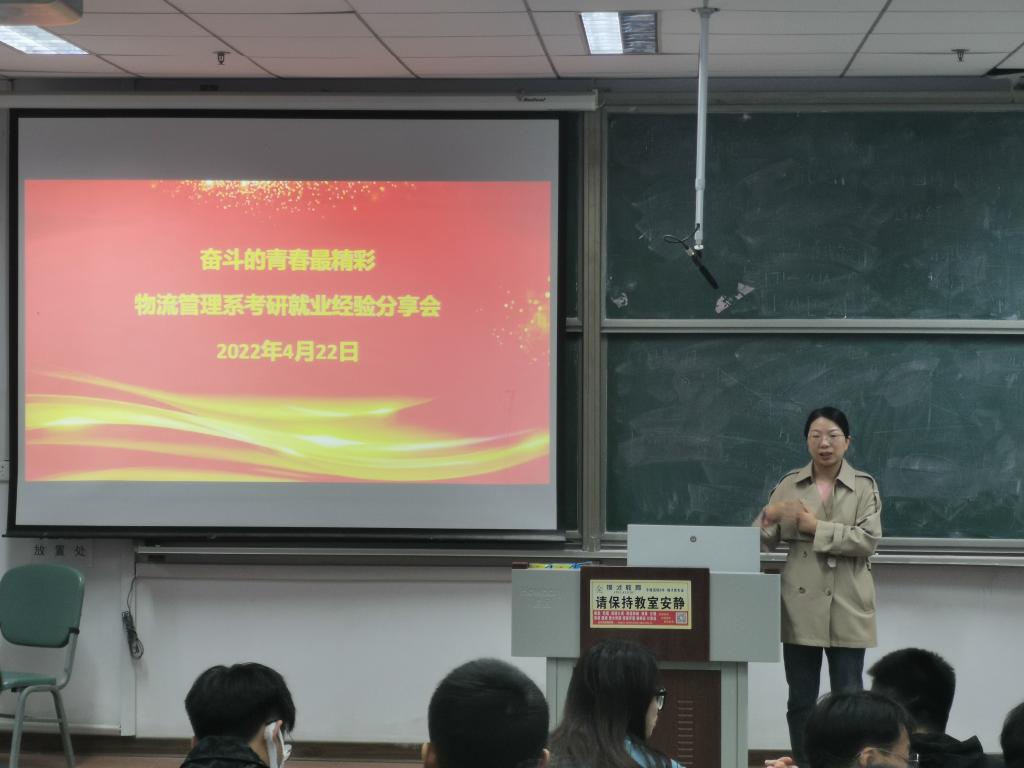 4月22日上午,ylzzcom永利总站物流管理专业于明德楼212教室举办 “奋斗的青春最精彩——2022届考研就业经验分享会”,党委领导班子联系支部成员王成果书记参与会议。本次分享会邀请了2018级5位优秀同学就考研、就业、竞赛相关方面进行经验分享。分享会由物流系副主任王艳婷老师主持,物流专业19级、20级、21级同学参加活动。