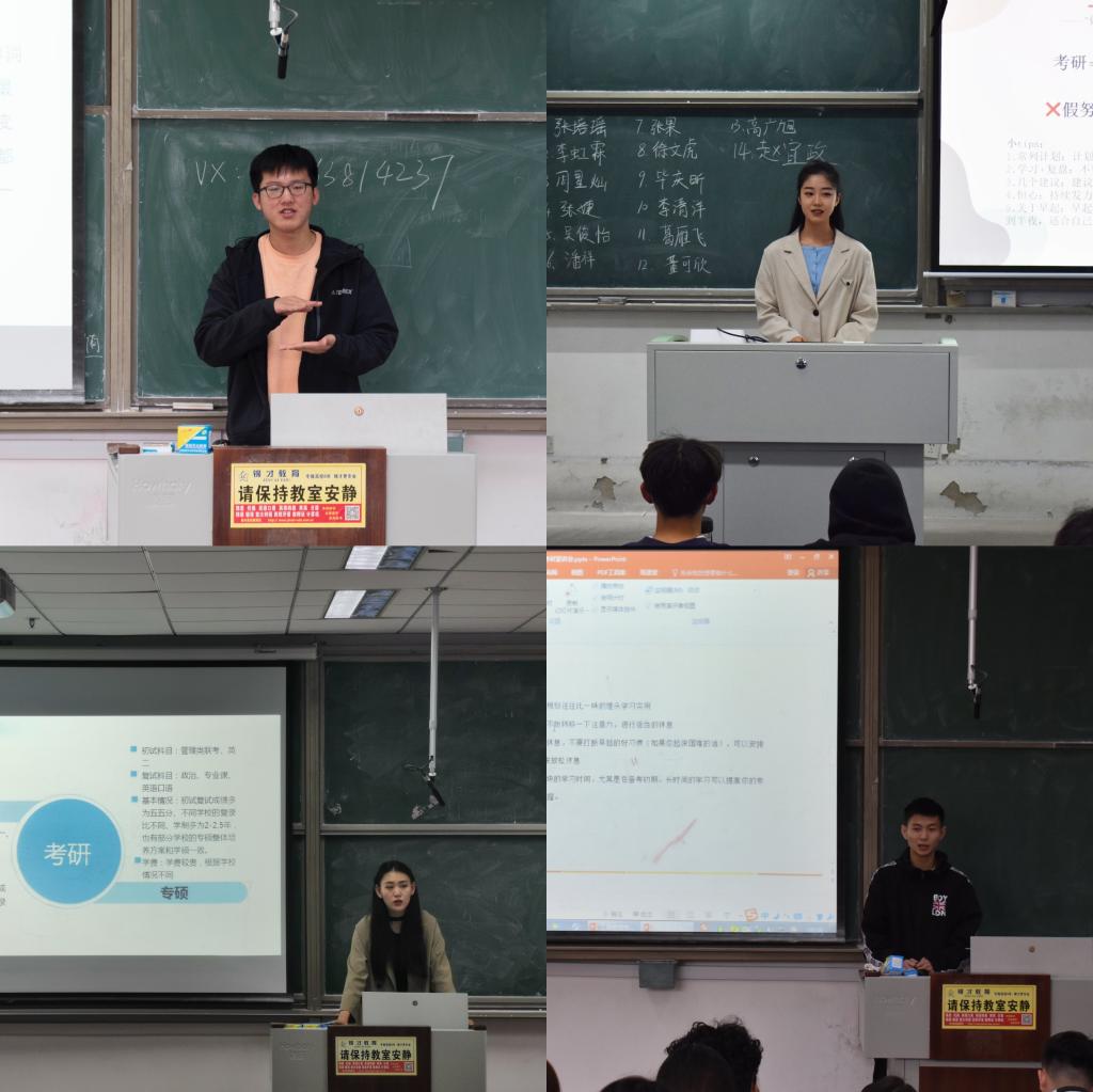 各专业系主任、2019级辅导员围绕当前考研与就业形势、个人规划与发展、学院近年考研情况等方面详细解读了考研的重要性与必要性,并从复习建议、心态调整、精神砥砺等角度做出具体指导。