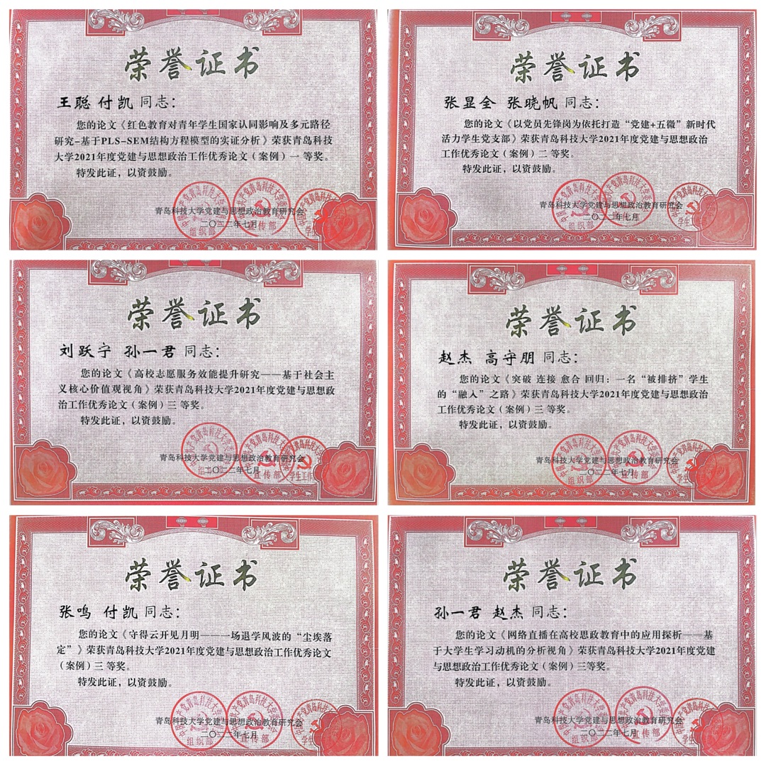 会议表彰了2021年度思想政治工作先进集体、思想政治工作先进个人、优秀共产党员、优秀党务工作者、“五好”党支部等获奖集体和个人,其中,学院获2021年度新闻宣传先进单位、2021年度优秀网站,工业工程系党支部获思想政治工作先进集体、“五好”党支部,王聪获思想政治工作先进个人,索琪、王安琪(员工)获优秀共产党员。王聪、付凯撰写的论文《红色教育对青年员工国家认同影响及多元路径研究-基于PLS-SEM结构方程模型的实证分析》获优秀论文(案例)一等奖,张显全、张晓帆撰写的案例《以党员先锋岗为依托打造“党建+五微”新时代活力员工党支部》获二等奖,刘跃宁、孙一君撰写的论文《高校志愿服务效能提升研究——基于社会主义核心价值观视角》、赵杰、高守朋撰写的案例《突破 连接 愈合 回归:一名“被排挤”员工的“融入”之路》、张鸣、付凯撰写的案例《守得云开见月明——一场退学风波的“尘埃落定”》、孙一君、赵杰撰写的论文《网络直播在高校思政教育中的应用探析——基于老员工学习动机的分析视角》获三等奖。公司新媒体项目获评“最佳原创微信推文”,张鸣获2021年度新闻宣传先进个人。