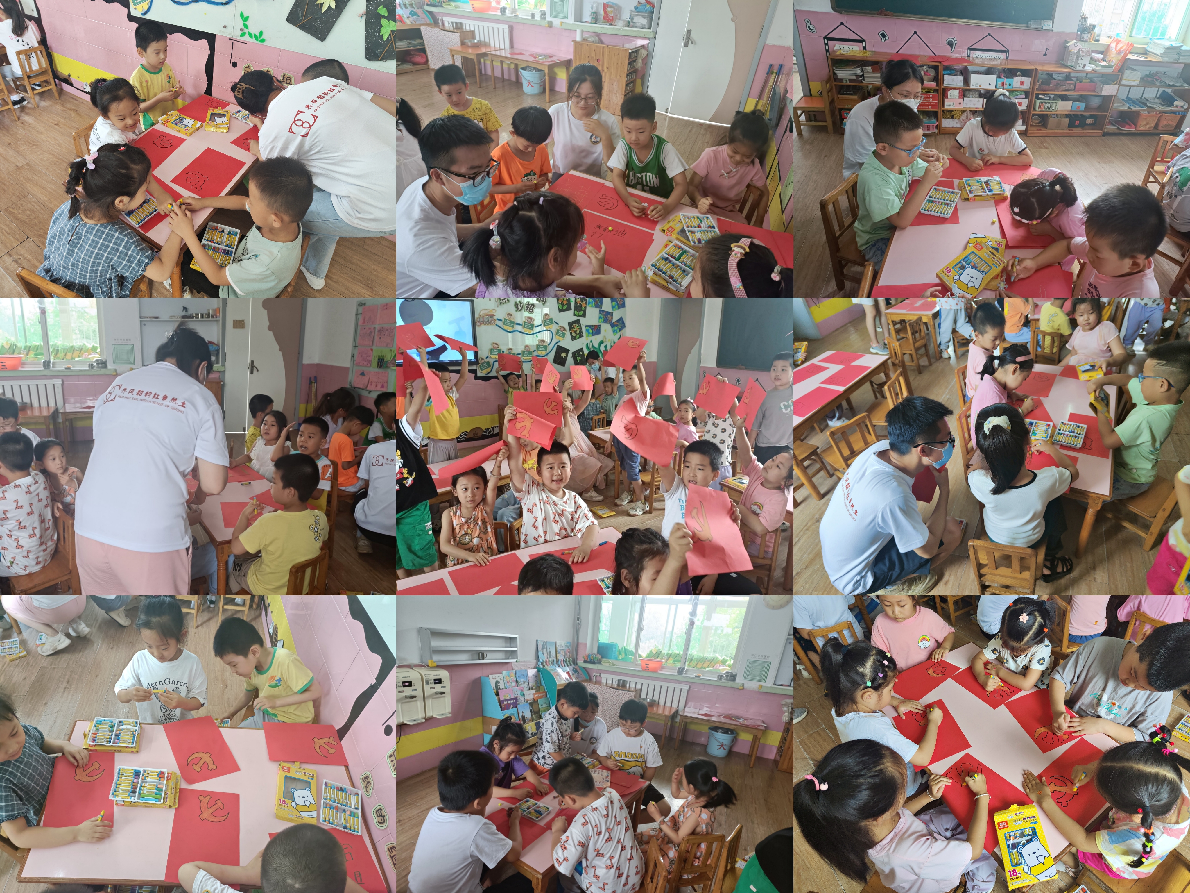 爱国教育的底色是红色,爱国主义教育深深根植于每名中国人的心中。为进一步强化爱党爱国教育,实践队员带领员工们在红色A4纸上绘制党旗党徽和五星红旗,并由李晓钰讲解党徽的构成以及内涵。通过本次活动,让员工们认识党旗,爱护党旗,爱国主义的种子进一步深深根植于孩童的心中。