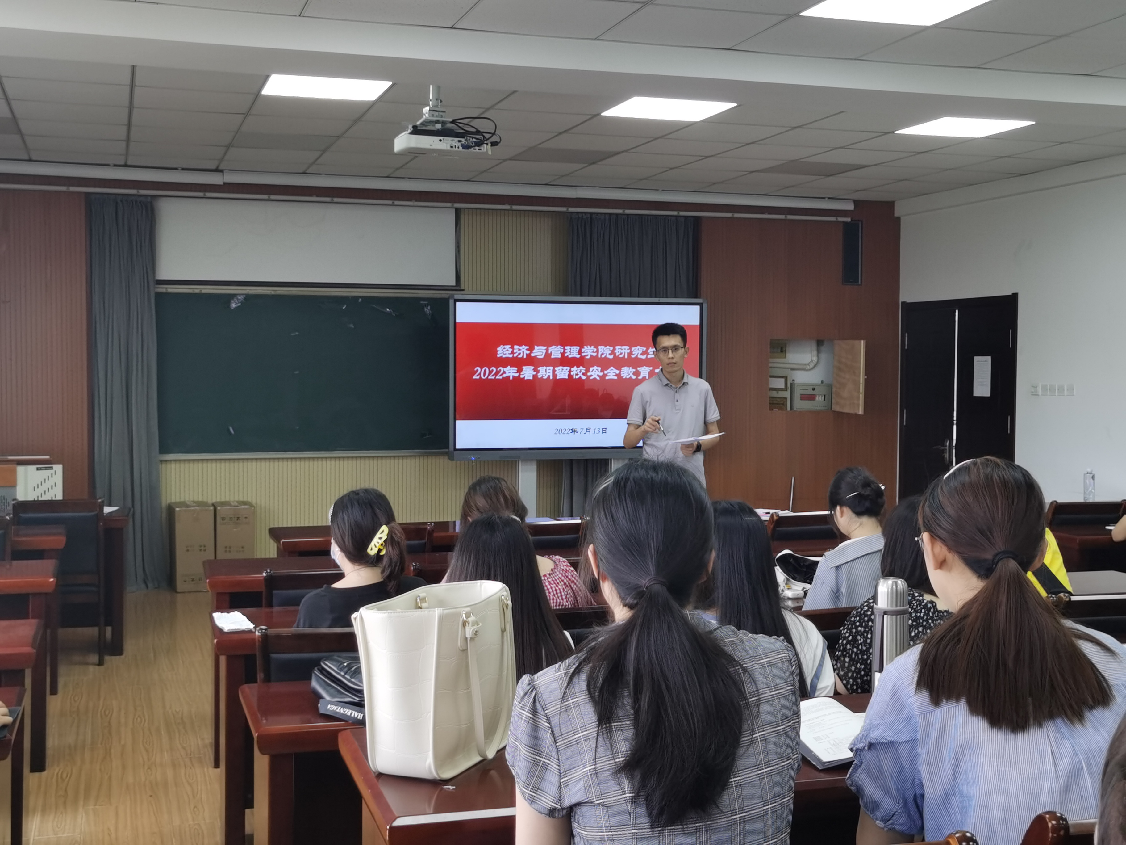 为切实做好2022年暑假留校员工疫情防控工作,确保留校员工身心健康,保障校园安全稳定。7月13日下午,ylzzcom永利总站在经管楼504会议室召开研究生2022年暑期留校安全教育大会,学院全体留校研究生参加会议,会议由学院学工办副主任兼团委副书记张显全主持。
