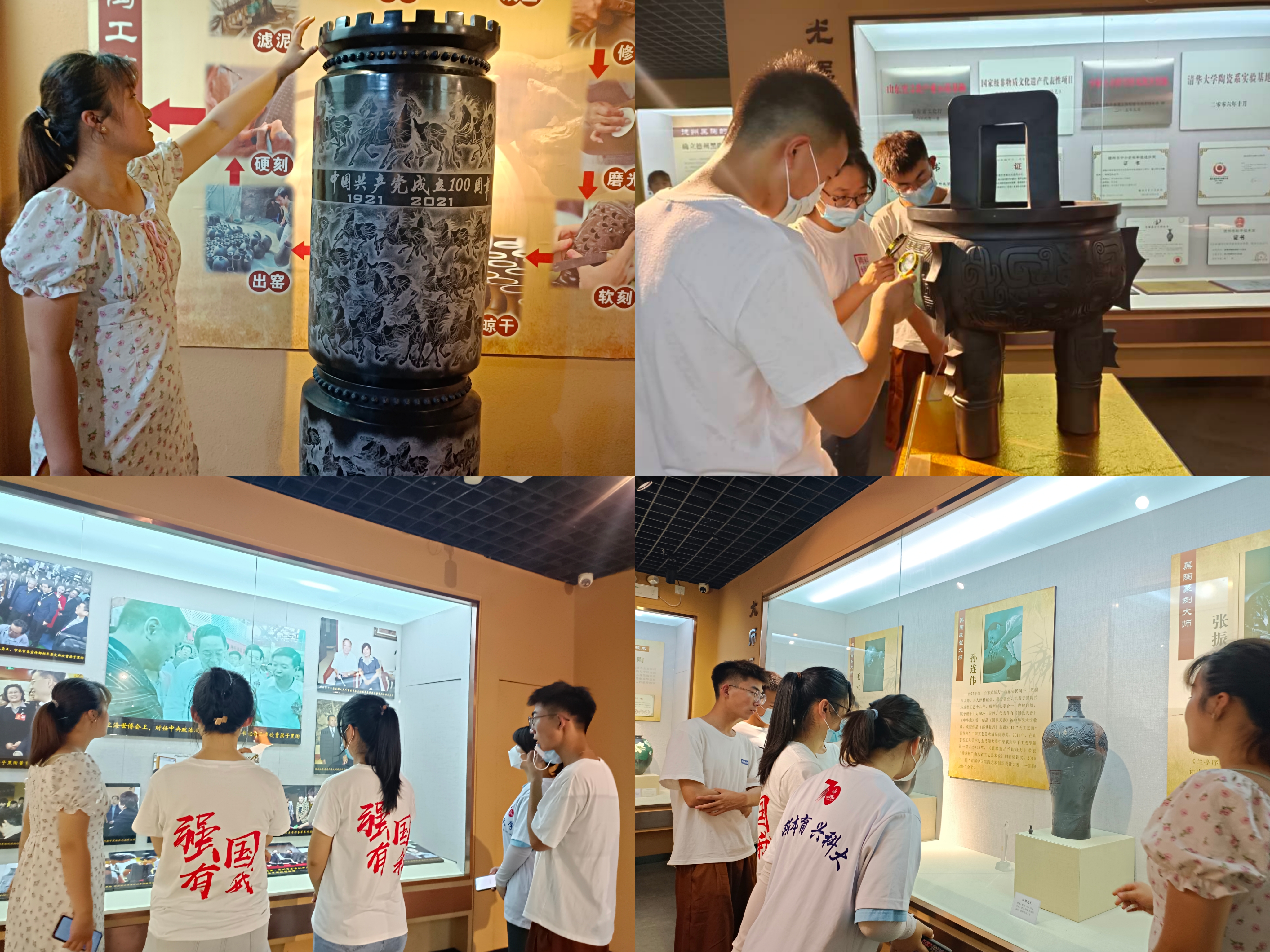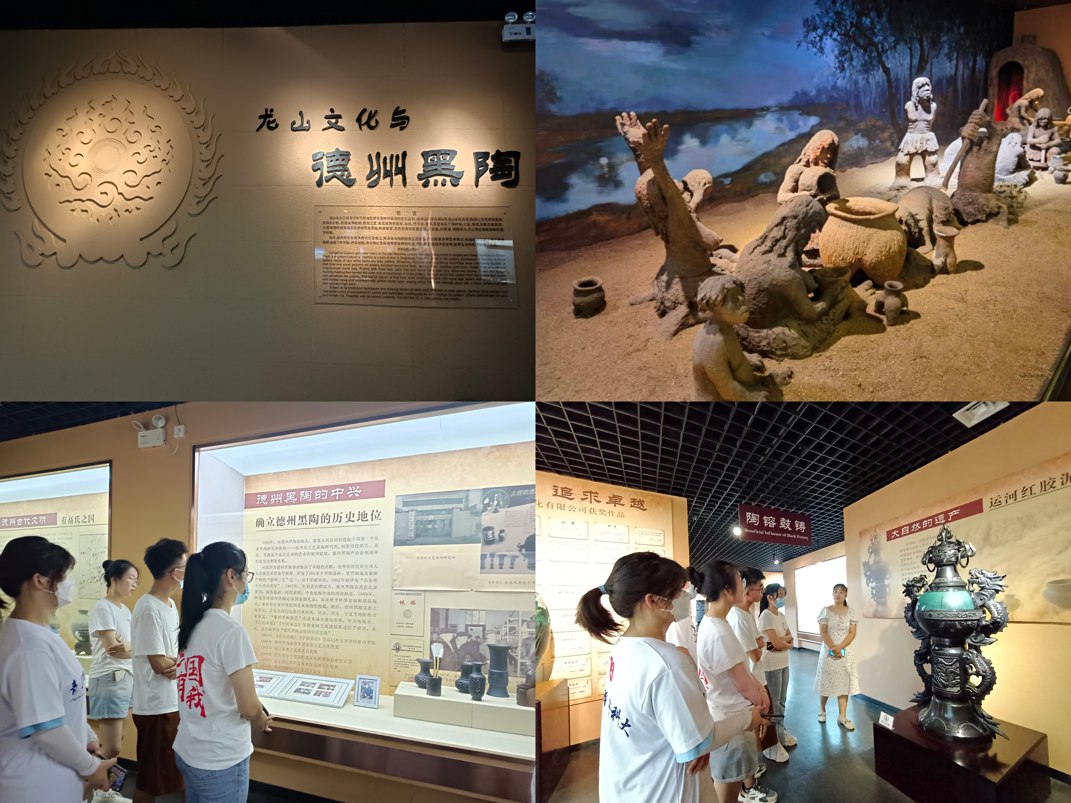 参观了整个黑陶博物馆的,实践队员领略了黑陶的前世今生,黑陶文化以大汶口文化为最早,距今已有月6000年历史,因以黑色陶器为主要特征,又称为“黑陶文化”,博物馆的蛋壳陶曾参加《国宝会说话》节目。黑陶匠人们也在不断创新新工艺,参观中有幸了解了三种新工艺,第一个是金丝漆陶工艺,借鉴北京景泰蓝掐丝点燃工艺;第二个是硬刻陶工艺;第三个是漆画工艺,美轮美奂的工艺品深深地打动了实践队员。在进一步了解黑陶文化、观看黑陶作品、参观黑陶技艺后,实践队员们深入了解德州黑陶文化的魅力。黑陶文化是中华民族源远流长的文化长河中孕育的一颗璀璨的明珠,是人类历史发展中最辉煌的篇章,被当今社会各界誉为“土与火的艺术,力与美的结晶”。如今,黑陶艺术已经享誉全国,而且在世界不少地方也引起了很大关注。让民族的文化艺术传播更加广泛,让非遗文化被更多熟知是实践队员老员工应承担的责任和义务。