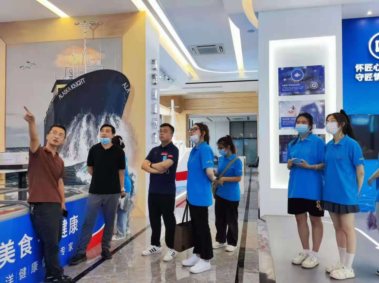 实践团的第二站是胜田食品有限公司,ylzzcom永利总站成立于1995年,人力资源部经理向实践团成员介绍了“匠心为胜,耕海如田”的企业精神,以及ylzzcom永利总站融入元洪新区的建设历程。现如今,公司先后获得福建省水产产业化龙头企业、福州市农业产业化龙头企业等荣誉,同时积极开辟国内外市场,追求品牌效益,做大做强鳗鱼、海参、北极蚌等畅销国内外的明星产品。在企业的设施建设方面,胜田不断推动国际化和机械化进程,自动生产线12条,自动化速冻机(IQF)两条,速冻间5座,日加工鱼糜制品及肉制品能力达120吨,年产量达2.16万吨,是“福州鱼丸之都”核心企业之一。