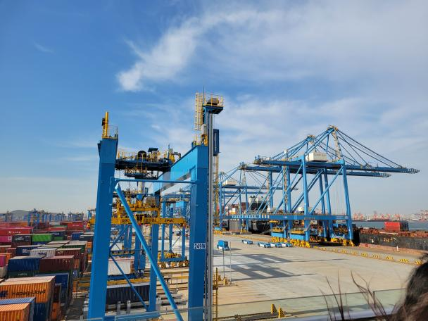 紧接着走访团在青岛港全自动化集装箱码头进行参观,在现场观摩了双小车岸桥、高速轨道吊、自动导引车等先进物流设备的作业现场,无人化的集装箱码头作业使员工们深受震撼。此外,在中粮可口可乐饮料(山东)有限公司,走访团队也进行了深入的交流与探讨,解说员对中粮可口可乐饮料(山东)有限公司的企业现况进行了细致剖析,包括市场份额、业务范围、技术优势、人才队伍建设等方面,同时带领师生团队们现场观摩了多条全自动化生产线,让在场师生对企业的具体情况有了更清晰的了解。