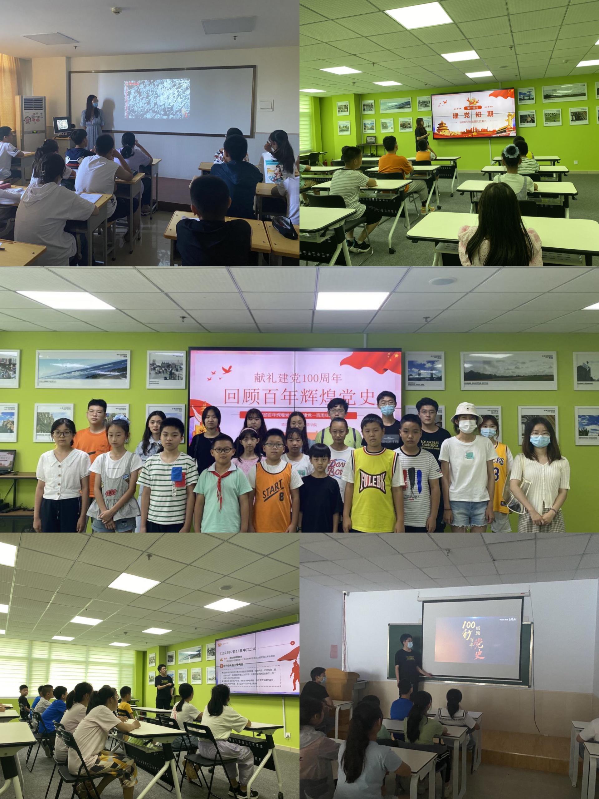 为学习光辉党史,继承先辈精神,发扬建党精神,7月21至7月25日,宣讲队先后去了淄博时代天材教育学校、张店佰斯特培训学校、淄博鸿翔培训学校、淄博爱文思培训学校,为初中到高中的同学们开展了党史宣讲。成员们带领员工们从嘉兴的小小游船到国共合作挥师北伐,从十四年抗日战争到新中国成立,再从抗美援朝保家卫国到现在的新时代。通过演讲、讲解ppt、播放党史视频等多种方式为员工们带去建党百年的历程,相信通过这次宣讲,在更深更广更实的层次上加强青少年思想引领,让爱党、爱国的种子在每个青少年心中落地发芽。