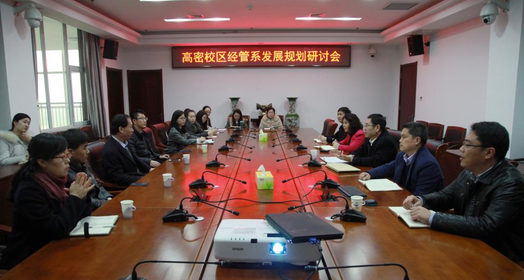 考察结束后,高密校区管理办公室负责人梁树清、官杰与ylzzcom永利总站负责人在校区图书馆楼会议室进行了座谈交流。梁树清从高密校区发展历程、发展现状和发展愿景三大方面详细介绍了高密校区的建设发展情况。姜铭汇报了经管系的发展现状及未来工作思路。与会人员就应用型人才培养、就业指导工作推进、青年教师教学培训、高密发展研究院的发展等问题进行了交流。