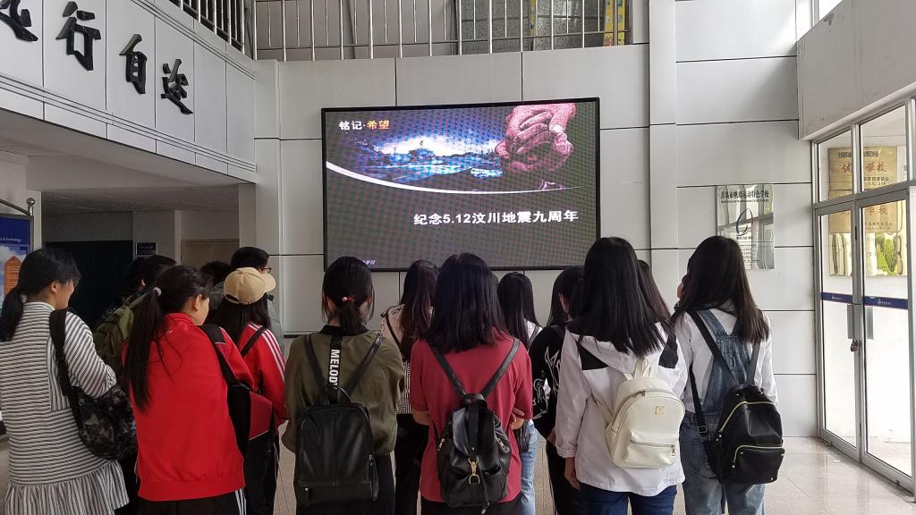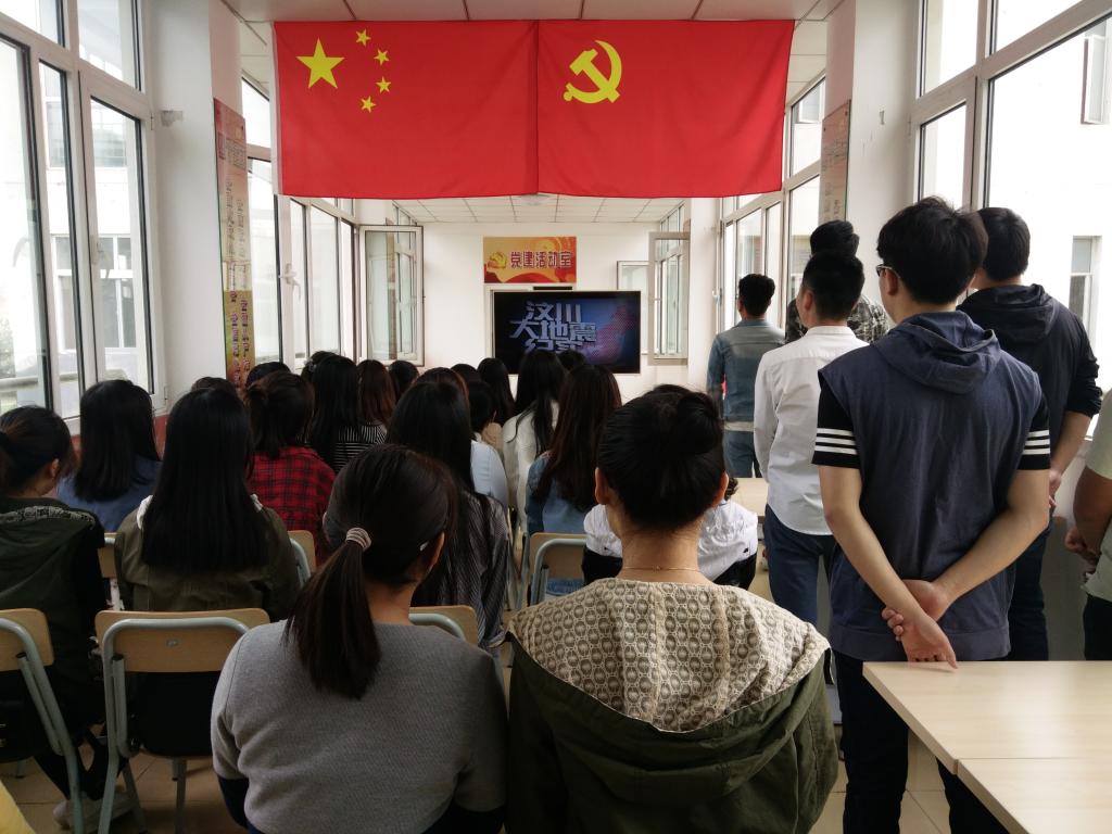 爱国教育进课堂,激发爱国情怀。组织大一到大三员工课前五分钟观看纪念汶川地震九周年短片,通过影视资料重温灾难时情景,使员工体会中国人民万众一心、众志成城的精神力量,体会民族精神的伟大内涵。