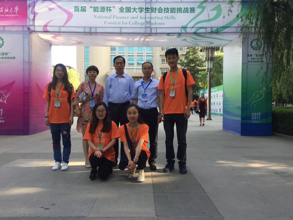 王志宪经理在西安参加校企高峰论坛的间隙亲临比赛现场鼓励同学们积极参赛,财务与会计系于培友老师、李玲老师带队参加现场比赛,财务与会计系主任张占贞老师作了初期的组织工作,后续的准备过程中,于培友老师和李玲老师具体组织了校内初赛和参赛队伍的多次模拟测试,财务与会计系多位老师也给予同学们相关指导。
