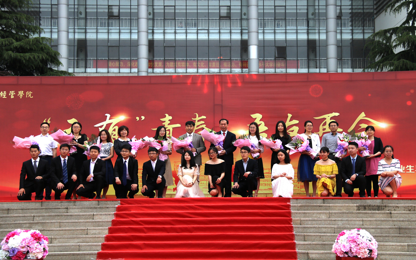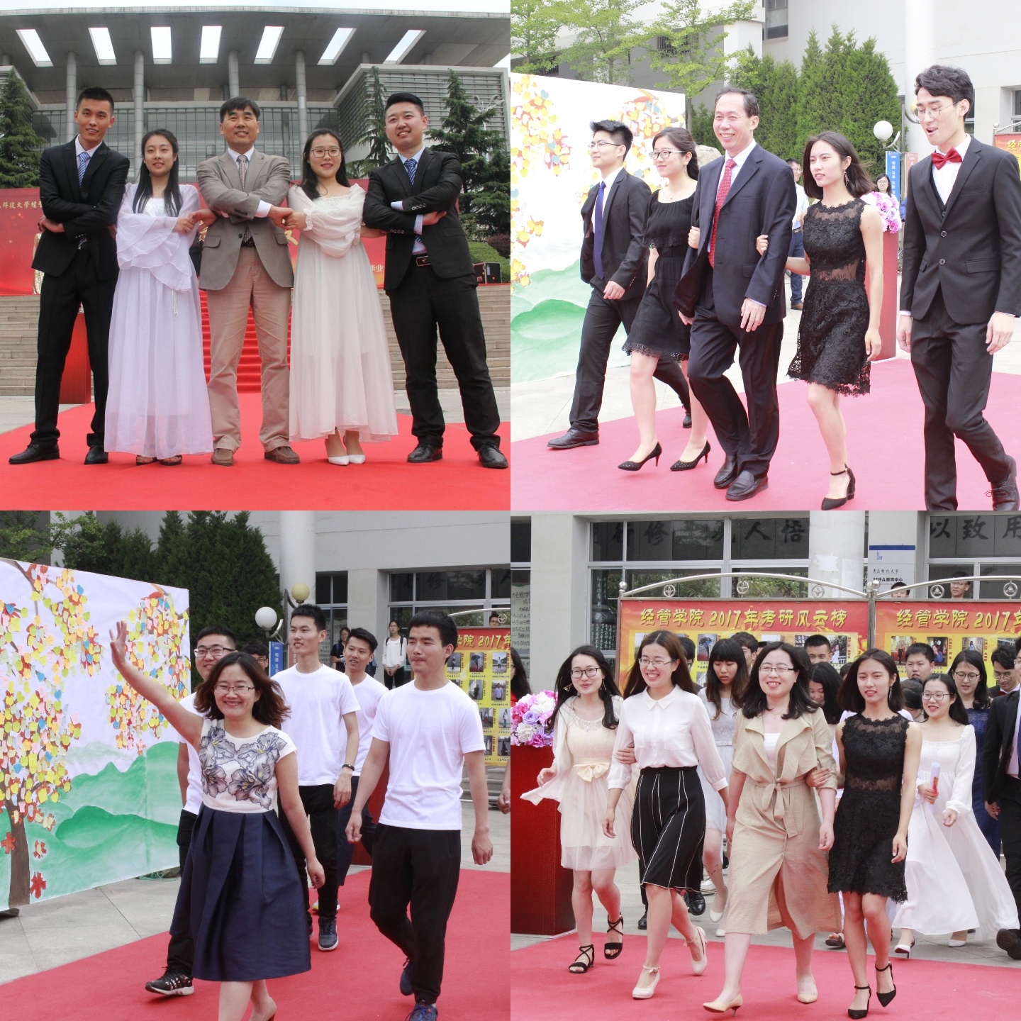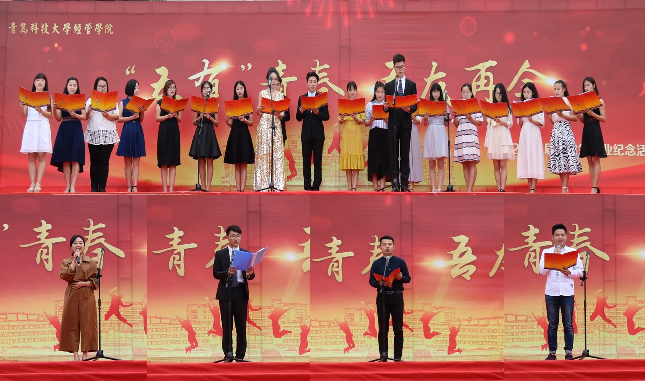 开幕式伊始,经理王志宪教授作了题为《五有青春,吾友再会》的毕业季致辞,教师代表接受毕业生献花并发表毕业寄语;四名员工代表分别从学习楷模、创业达人、科技创新和志愿服务方面进行了我与科大的四年主题演讲,21名省级优秀毕业生进行了《请老师们放心》诗朗诵,表达对老师们四年来辛勤培育的感恩对美好祝愿。接下来,毕业生们盛装出场,依次走过红毯,在签名墙上留下名字,纪念在科大的青春,展现了经管学子有活力、有特色的积极向上的精神风貌。