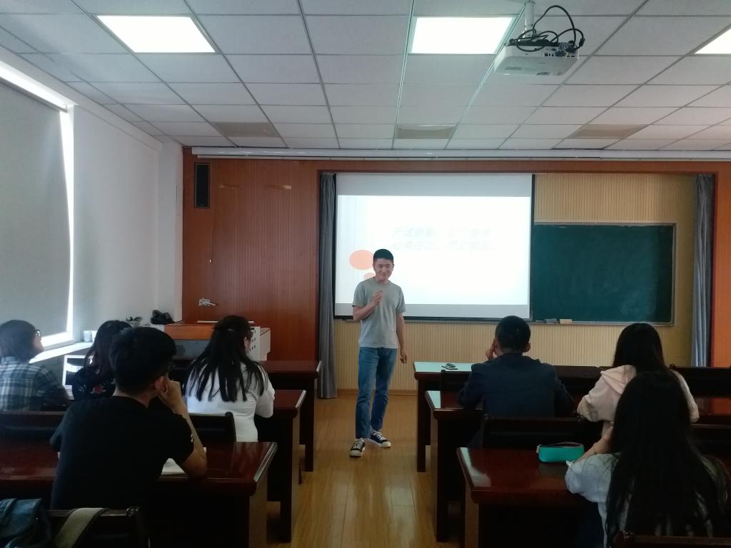 物流131班的于元宏为各位同学介绍了选调生与公务员的区别,深入分析考取选调生的主要流程,并与各位同学积极交流。作为班长,他还对14级和15级的班长提出了希望,希望他们在班级中发挥积极的先锋带头作用,注重班级的学风建设。同时,他也告诫各位同学要常怀感恩之心。