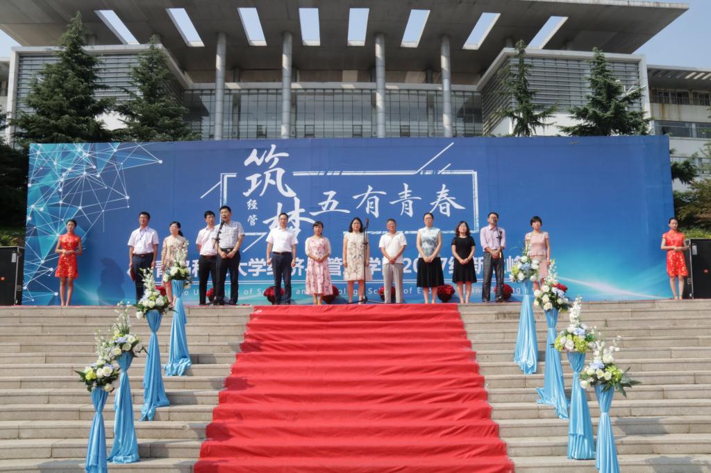 再现经济峰会,突出经管特色――本次迎新模拟大型世界经济峰会,新生在现场作为不同专业的代表团进入峰会活动现场。现场布置将世界级经济峰会整体模式与迎新相结合,场地中央布置巨大“五有青春,筑梦经管”主题喷绘,同时还设置了新闻发布区、采访区和拍照留念区等功能区域。从第一天就为员工营造专业氛围。