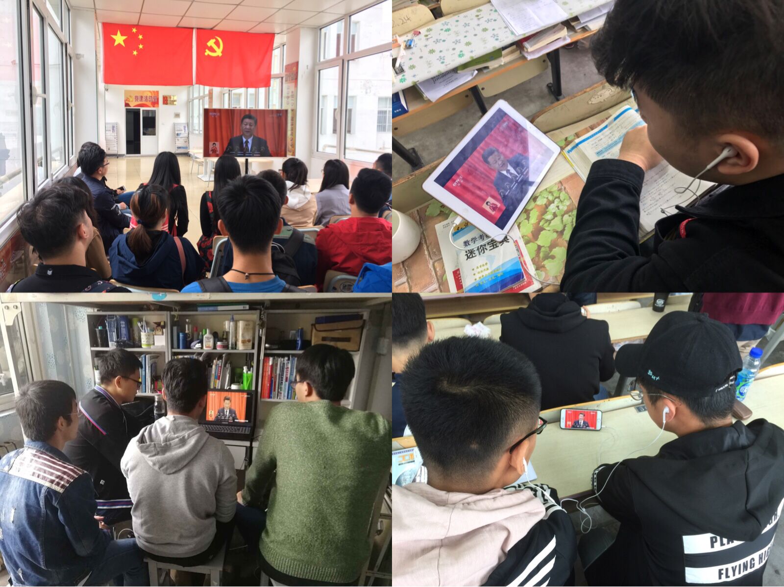 在整个开幕式的过程中,每位收看者都对大会表现出了极大的关注,聚精会神地聆听了习近平总书记报告中的每一句话,有的党员还认真地做着记录,同时深深地被现场的气氛感染着。老师们倍受鼓舞,表示将用扎实的工作教书育人,来贯彻落实党的十九大精神;同学们纷纷表示要深刻领悟党的十九大精神,学好专业知识,用实际行动向党的十九大献礼。