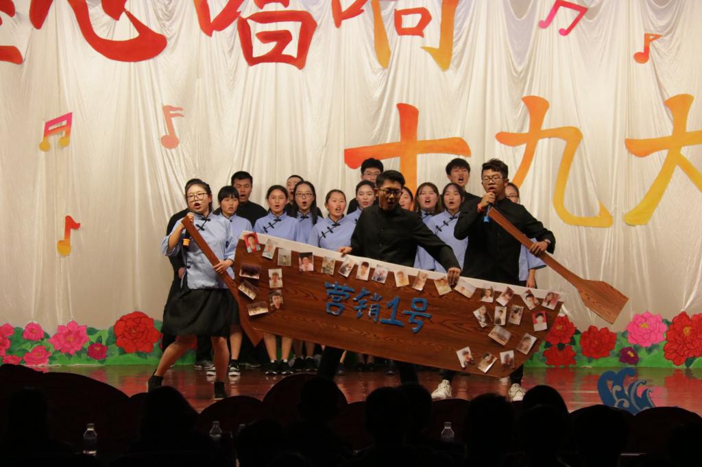 经过初赛的激烈角逐,共有七个班级成功晋级决赛。决赛共分两个部分:“‘经’心领航,共筑中国梦”和“‘经’心唱响十九大”主题表演。各班级结合专业特色在表演中加入舞蹈、说唱、音乐剧等元素,以良好的精神风貌展现了他们不忘初心、逐梦笃行的青春与活力,唱响了十九大的赞歌,赢得了现场观众的阵阵掌声。最终,国贸172班荣获一等奖,ACCA172班、营销172班荣获二等奖,国贸171班、财务3+4班、管理171班、营销171班荣获三等奖。