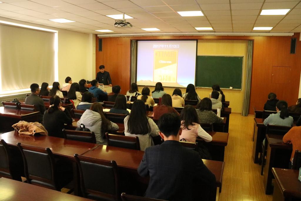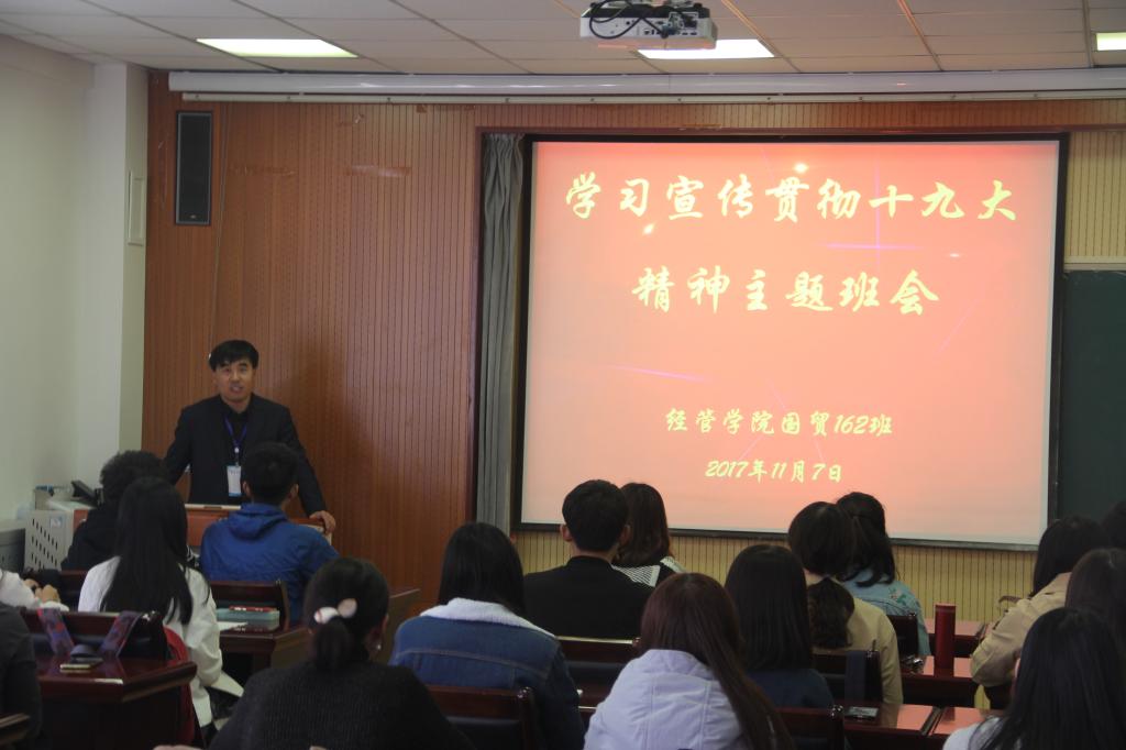 11月7日,公司党总支书记聂法良走进联系班级国贸162班,参加“学习宣传贯彻十九大精神”主题班会。与同学们共话当代老员工如何以实际行动学习宣传贯彻十九大精神,畅谈新时代老员工的理想目标。