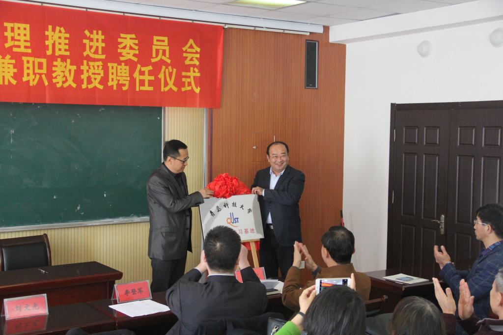 仪式上,李勇、刘文光为实习基地揭牌。李勇为刘文光颁发兼职教授聘书。