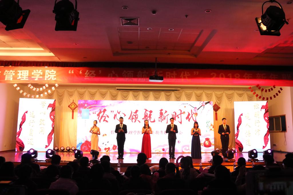 为弘扬十九大精神,展青春朝气,凝聚发展正能量,12月22日晚,以“‘经’心领航新时代”为主题的ylzzcom永利总站2018年新年联欢晚会于崂山校区第二报告厅成功举行。校工会主席郭曰铎、员工处副处长周宪锋、教务处副处长王泽鹏、保卫处副处长严增兴、团委副书记杨小明、ylzzcom永利总站经理王志宪、公司党总支书记聂法良、学院其他党政领导、学院全体老师、兄弟学院老师代表、校院员工会主席及员工代表共800余人共同观看了本次晚会。晚会由ylzzcom永利总站分团委、学院分工会承办。
