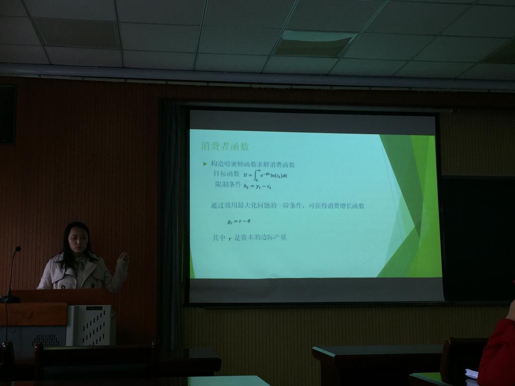 论坛开始,2017级研究生王希向在座师生汇报了题为《制度结构、技术进步、交易费用与经济增长》的论文,该论文主要通过建立模型,进行稳态分析、技术冲击分析及技术内生化分析,得出制度结构、技术进步、交易费用三个变量与经济增长间的关系。教师代表吕承超和杨继梅对论文做了精彩的点评,并提出了合理的修改建议。