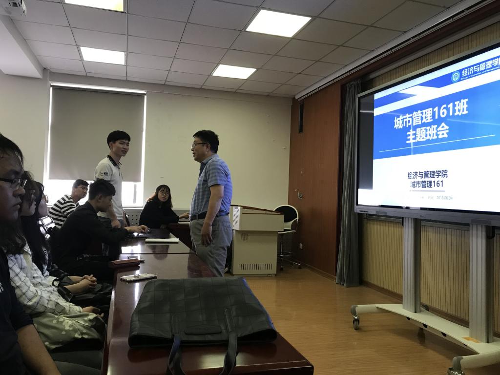 6月4日,校纪委副处级纪检员傅进走进联系班级,参加ylzzcom永利总站城市管理161班主题班会,与青年员工共话学校发展、共享发展成长。