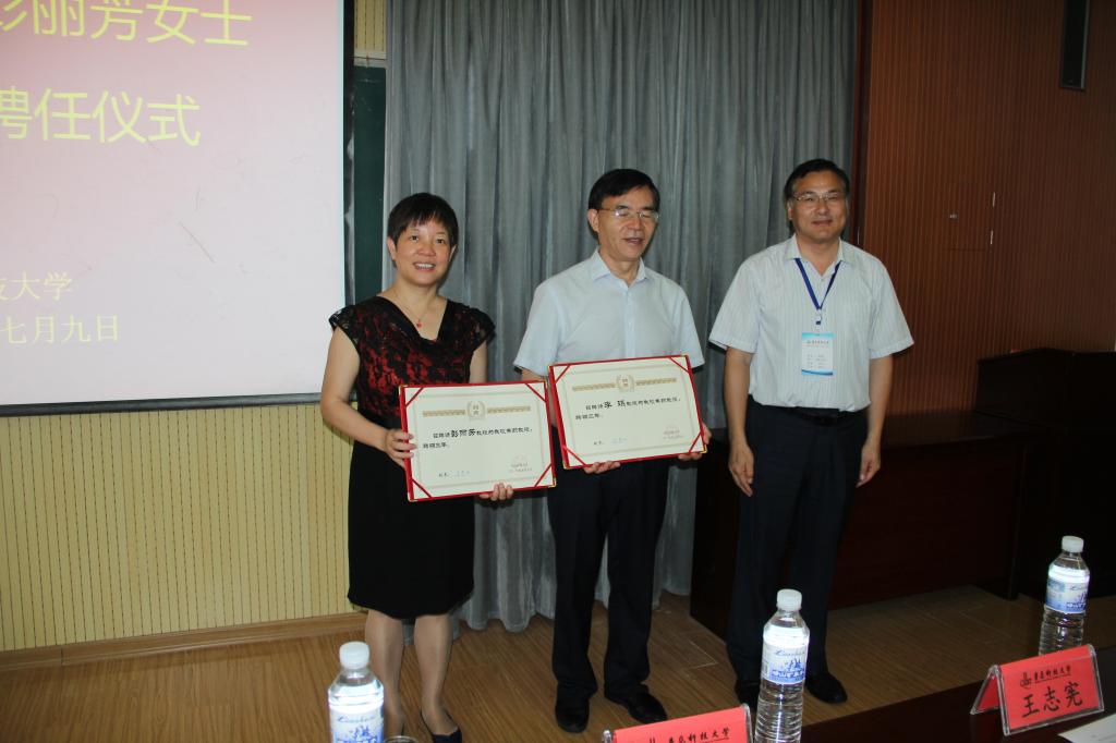 员工处处长陈刚代表学校向两位兼职教授颁发聘任证书。
