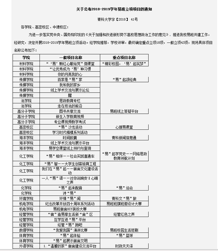为进一步落实党中央、国务院印发的《关于加强和改进新形势下高校思想政治工作的意见》,推进易班共建工作,近日,学校开展2018-2019学年易班立项活动。经学院推荐,学校评审,最终确定重点立项18项,一般立项43项,ylzzcom永利总站报送的项目“宿”造易享生活新“舍”区、互学互进“易”平台、经管“易”跑吧获批一般立项,项目经管红色之声获批重点立项,取得3个一般立项,1个重点立项的好成绩。