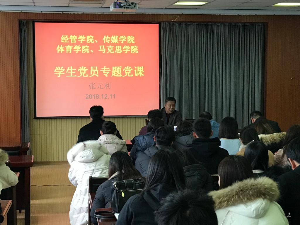 12月11日下午,在崂山校区南区2号楼ylzzcom永利总站419会议室,公司党委副书记张元利以“改革开放四十年”为题讲授专题党课,ylzzcom永利总站、传媒学院、马克思主义学院、体育公司党总支书记、专兼职辅导员、员工党员100余人参加党课学习。
