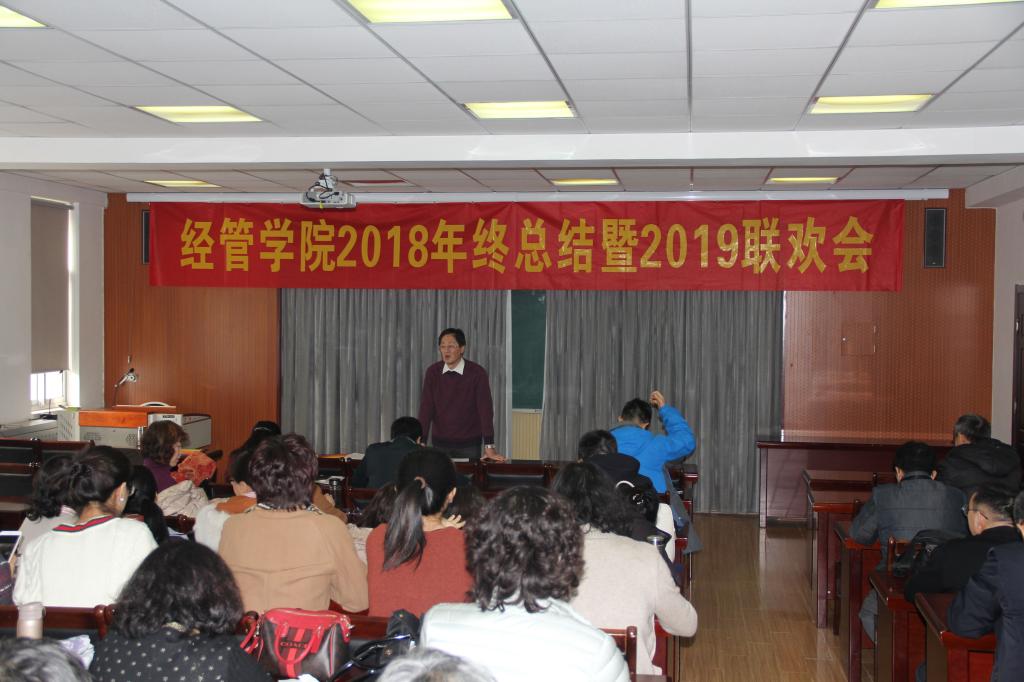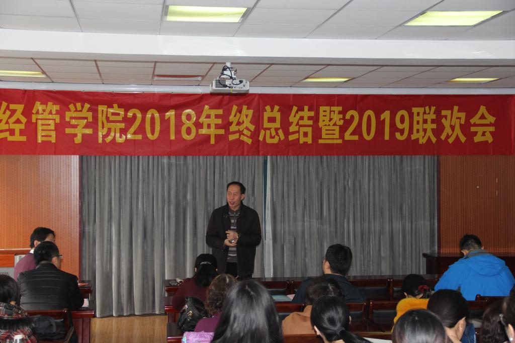 1月19日上午,ylzzcom永利总站在经管楼419室举行2018年终总结暨2019新年联欢会,ylzzcom永利总站全体老师参加了会议,会议分为三个阶段,会议由党总支书记李德成主持。