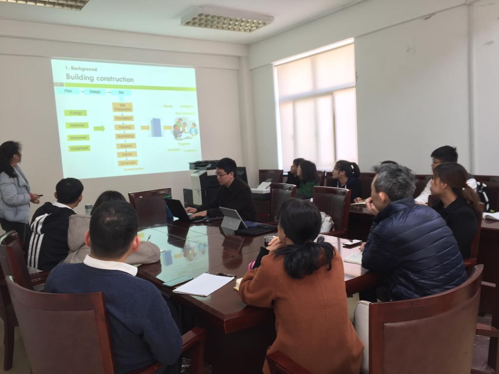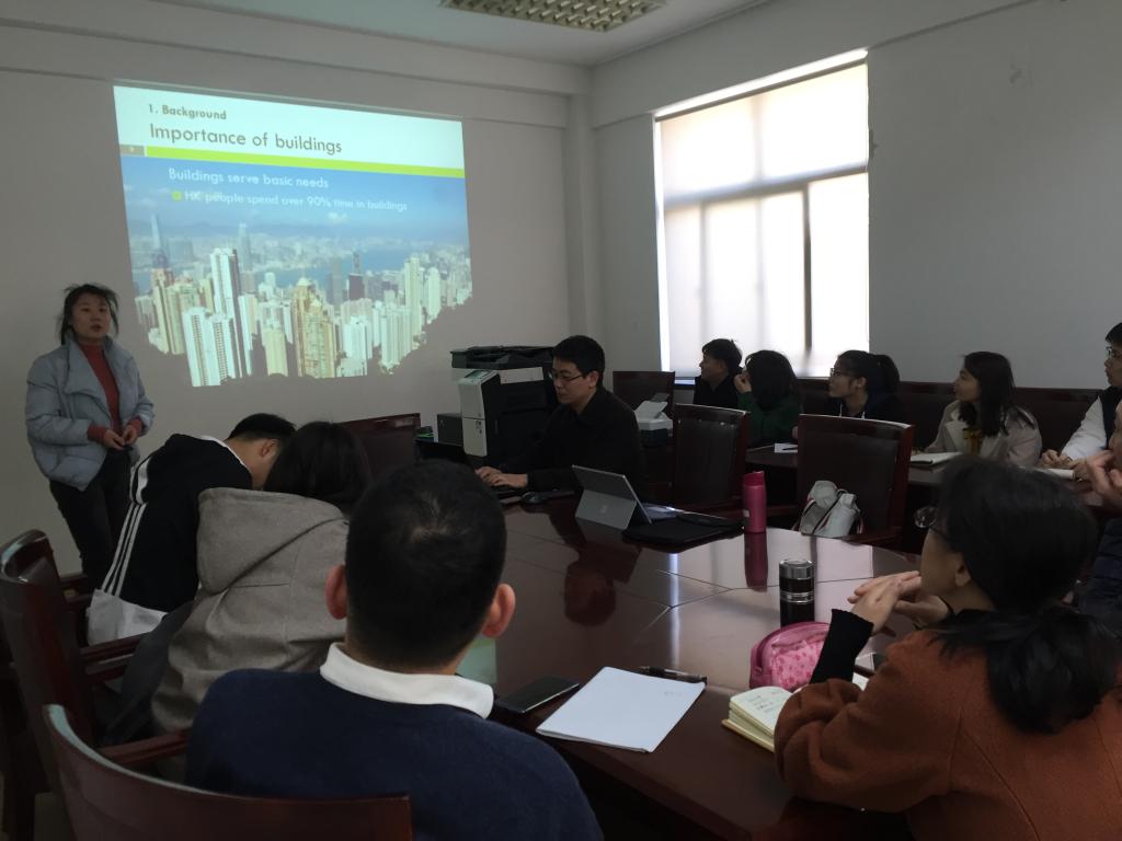 董雅红教授全程用英语报告了基于ELCA(Environmental life cycle assessment),ELCC(Environmental life cycle costing)和S-LCA(Social life cycle assessment)建立的一个全面的全生命周期可持续评估模型(LCSA),并以香港一处住宅建筑工程作为案例,介绍了该模型的应用程序和过程。全生命周期可持续评估模型适用(LCSA)从环境、经济、社会三个维度全面评估产品或项目可持续性,具有广泛的应用前景。报告结束后,与会人员老师和同学们就该模型相关问题进行了深入的交流讨论。