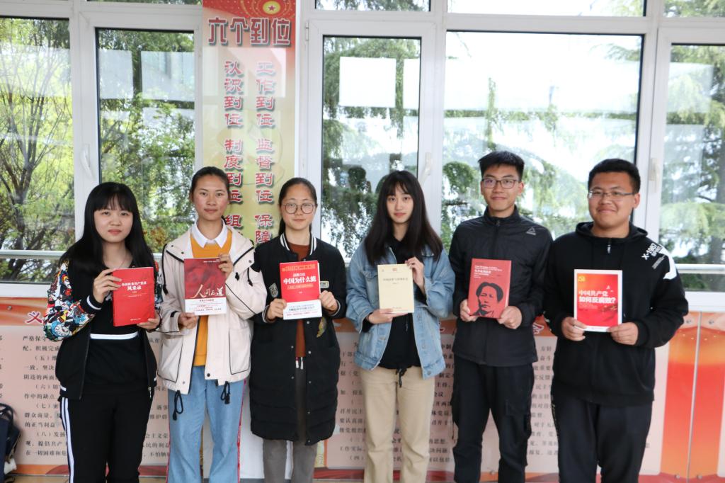 随后进行了学院赠书环节。经学院甄选,本次选购的书籍涵盖党政理论、经济金融、社会文化、历史地理以及自然科学等领域,学院倡导每天阅读一小时,每月阅读一本书,不断丰富自身人文修养,夯实思想建设。同学们表示,能和大家一起在书香中学习,感觉十分充实。活动结束后,读书会成员进行了活动总结,通过批评与自我批评,进一步明确了提高方向。