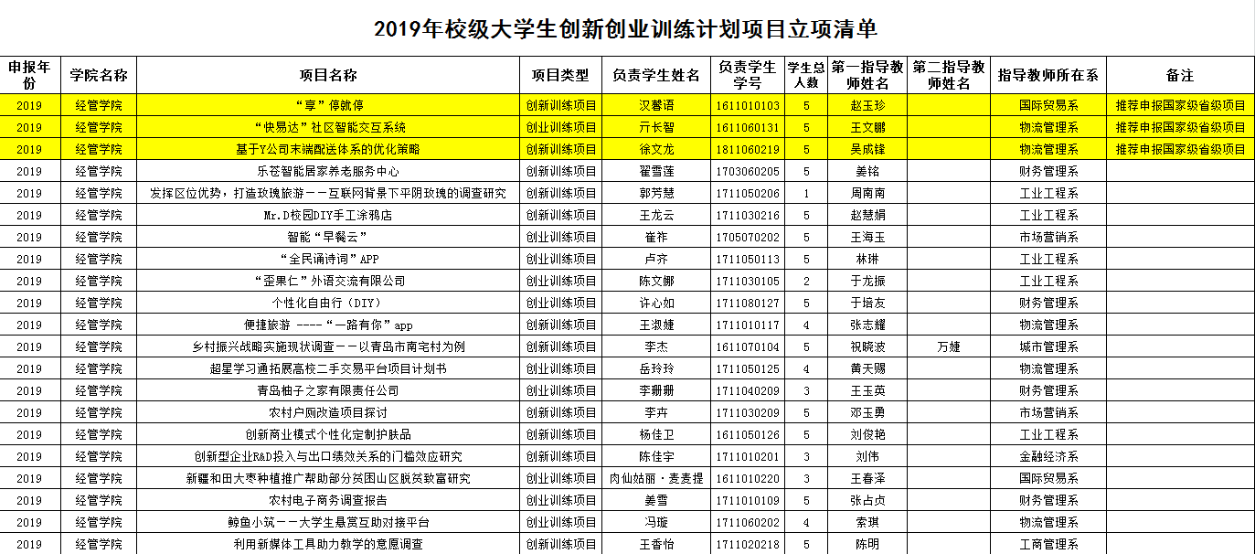 日前,创新创业教育学院公布了2019年校级老员工创新创业训练计划项目立项名单,ylzzcom永利总站21个项目立项2019年校级老员工创新创业训练计划项目,其中创新训练项目11项、创业训练项目10项。具体项目信息见附件。其中,学院有3个项目被择优推荐申报国家级、省级“大创计划”项目。
