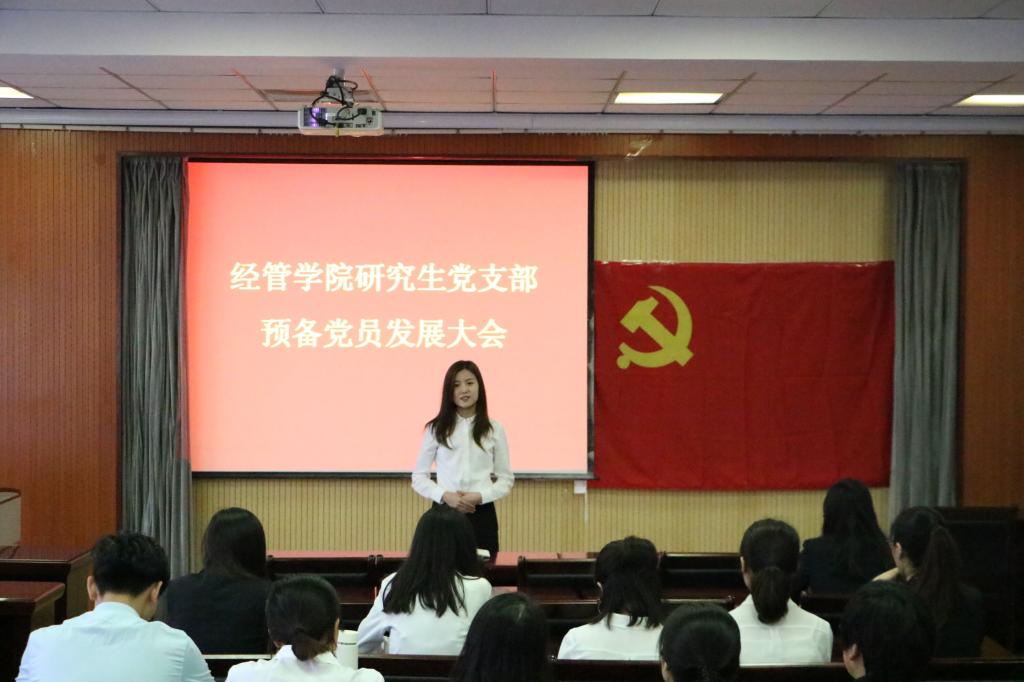 大会伊始,与会人员全体起立齐唱《国际歌》,申请入党的发展对象李青格宣读入党志愿书,汇报自己对党的认识和入党动机等问题,之后发展对象的两名入党介绍人分别从学习、工作、思想等方面介绍发展对象的基本情况并发表意见,支部委员会介绍申请人的政治审查情况,随后与会人员开展积极讨论,并对发展对象提出了不足和改进建议,支部大会作出无记名投票并宣读决议,同意接收李青格同志为中共预备党员,将向上级党委申报进行审批。紧接着,预备党员国宇洁宣读转正申请书,并向党组织汇报这一年来的思想、工作和学习等情况,对自身的进步与不足作了认真的总结。入党介绍人对申请人在预备期一年内的思想、工作、生活等各方面表现进行总结评价,随后支部大会作出无记名投票并宣读决议,一致通过国宇洁同志转为正式党员。