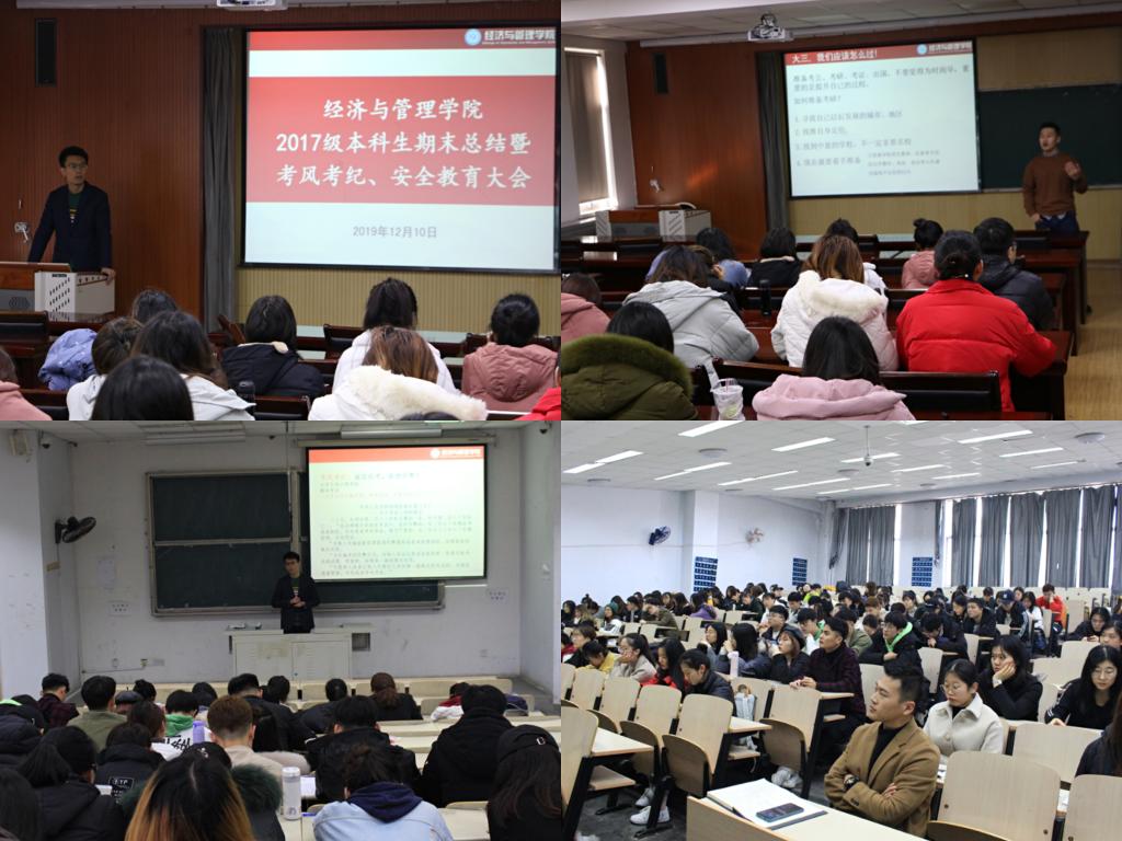为进一步加强学风建设,严肃考风考纪,提升员工诚信意识,落实学校学院关于期末考风考纪和安全教育的工作要求,12月10日,ylzzcom永利总站2017级本科生于弘毅楼E302室分专业召开期末总结暨考风考纪、安全教育大会。本次大会由17级辅导员张显全老师、马梓轩老师主持,17级全体员工参加。