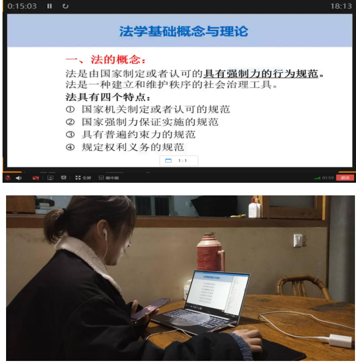 因为疫情,开始了第一次的网上授课。同学们都感觉很新奇,老师也是紧密的筹备。虽然是网上授课,但同学们的学习热情与老师的讲课热情依旧不减,整个课堂都活跃在浓厚的学习氛围中。