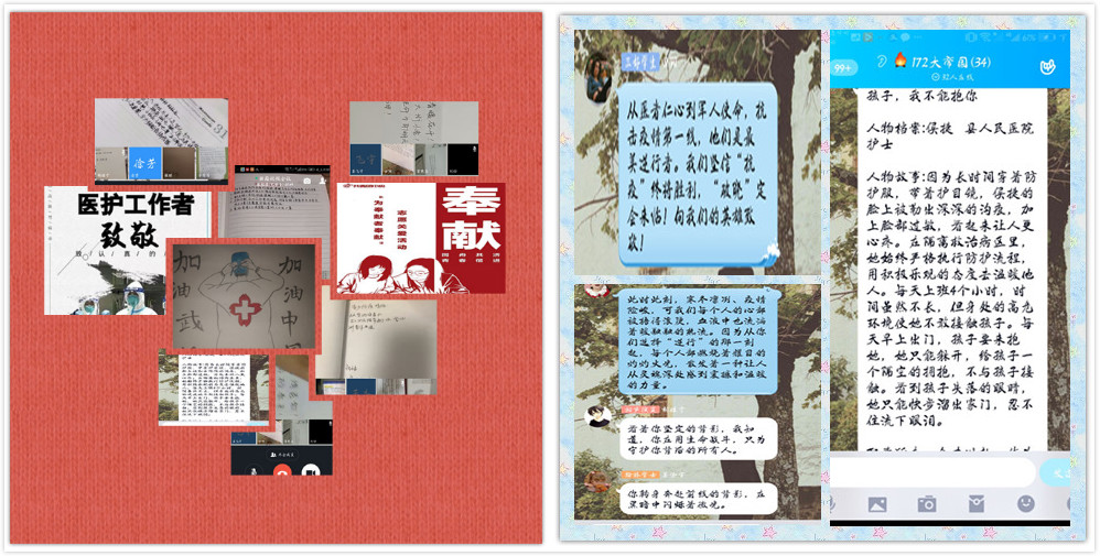 病毒无情,人间有情;勇往直前,白衣使命;勇毅笃定,战无不胜。财务172团支部利用学习强国视频会议以及QQ群等线上资源开展了一次特殊的团日活动,同学们通过QQ平台积极分享、各抒己见、踊跃发言,分享自己身边最美“逆行者”的故事,给“逆行者”们送去最诚挚的祝福。财务172团支部书记王雪姣在交流活动中谈道:“寒冬凛冽、疫情险峻,可总有那么一群人逆行而上,把我们每个人的心都捂得滚烫,血液中也流淌着暖融融的热流。”