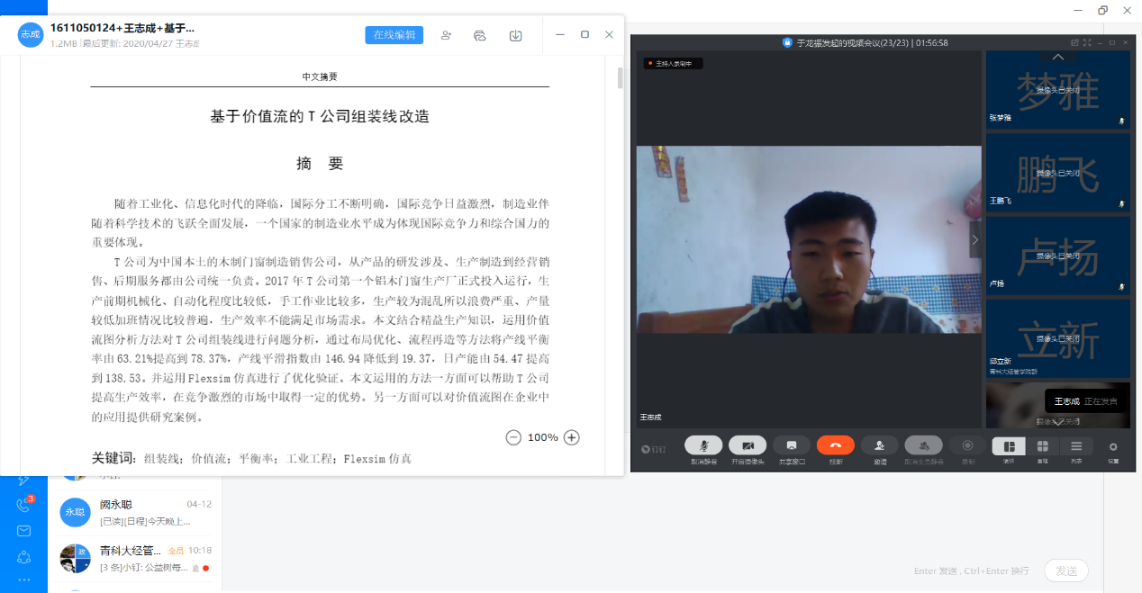 根据ylzzcom永利总站2020届本科毕业生答辩进度计划,学院本科生毕业论文中期检查报告会于4月28日下午顺利进行。受新冠疫情影响,学校推迟开学,学院各专业提前组织计划,克服重重困难,对550余名2020届毕业生开展了线上毕业论文中期检查。学院7个本科专业共分成23个检查小组,各专业本科生导师以及全体毕业生通过腾讯会议等网络平台在线参加了毕业论文中期检查报告会。
