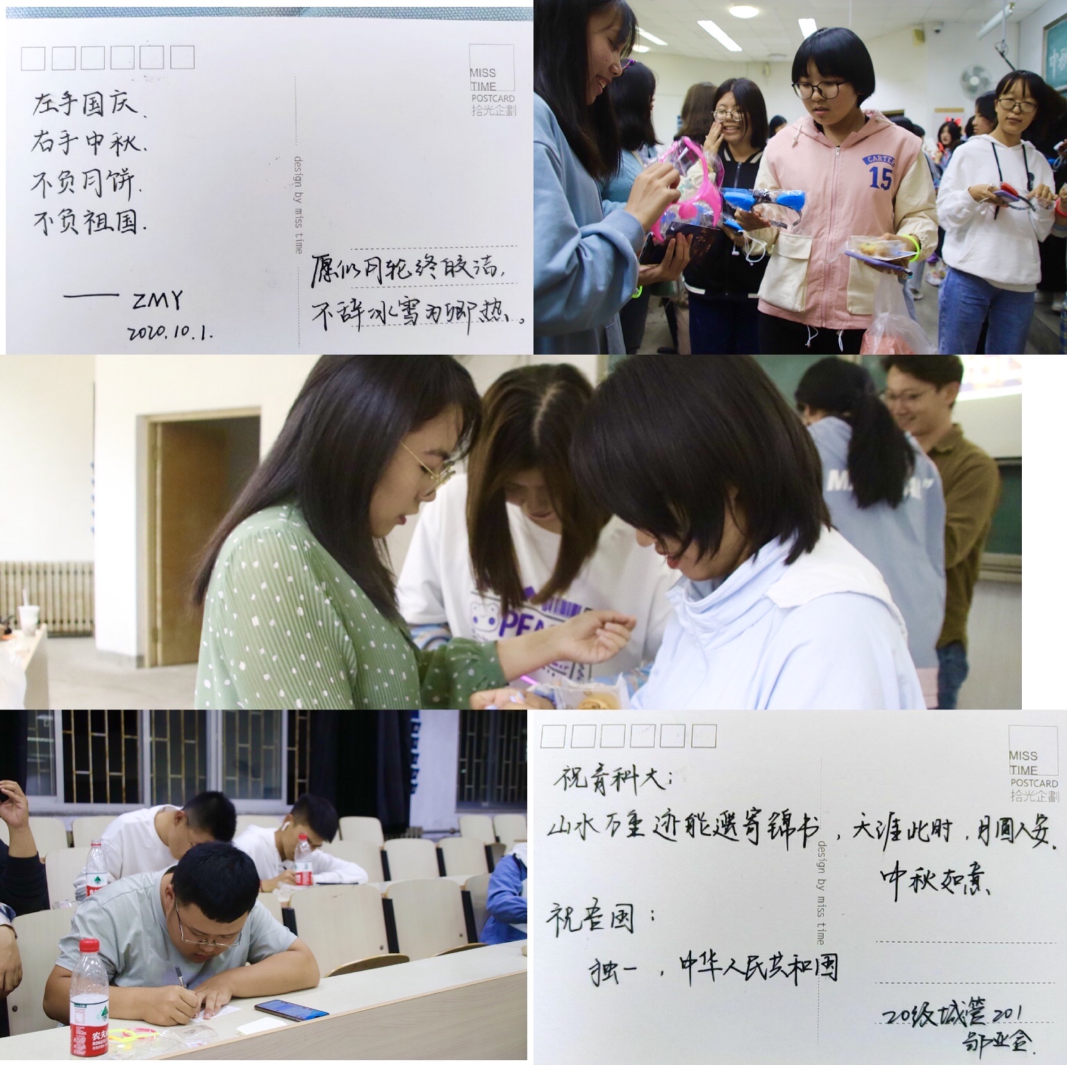 公司以“随风寄相思”为主题,开展明信片互递活动。“字字传递真情,句句书写真心。“最温馨的阶段莫过于手写祝福。”祖国快乐,月亮快乐,你也快乐。“”十月的好运拍了拍你。“”平安喜乐,万事胜意。“身在异乡,收到来自同学的花式祝福,让大家感受到了经管大家庭的温暖。月圆中秋夜,共话温暖情,正如工商管理201班张嘉欣同学所说:”这是我过的第一个中秋国庆相遇的双节,恰逢我与青科的相聚,不胜欢喜。今年的中秋国庆,没有往日与亲人的欢聚,却拥有一群可爱的人——我在青科的家人们。”独特的感悟和真实的情感洋溢在每个学子的心头。