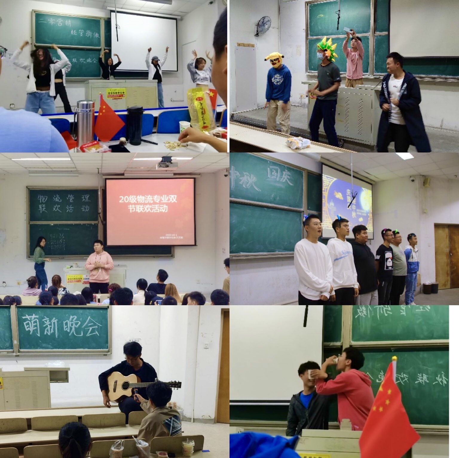 “时逢华诞玉轮圆,双喜临门不夜天。”为了更好的晚会体验,学院提前准备了十四种不同口味的青科限定月饼和明信片,同学们积极准备了展示的才艺与游戏的策划。晚会进行过程中,同学们踊跃表演节目,新生辅导员付凯与王世杰参观各专业的晚会现场并参与现场表演,为员工送上节日的祝福。一个个小小的月饼,洋溢着甜蜜的情感,一次次暖心的互动,共谱师生心连心的佳话。