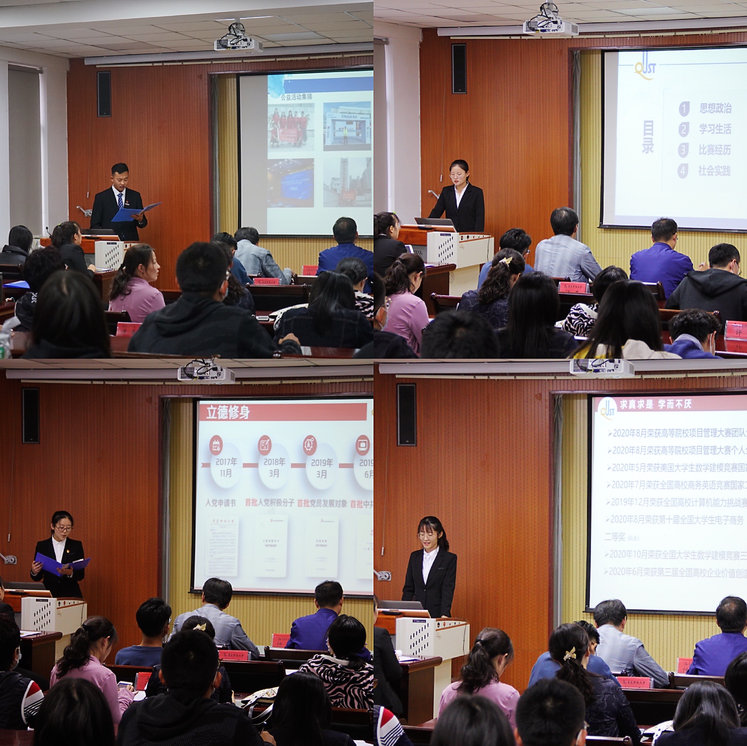为充分发挥榜样示范作用,启动仪式结束后,学院举行了山东省国家奖学金、省政府奖学金答辩会。城管182班袁炳顺、财务172班姜泓宇、物流172班姚天 姿、财务(ACCA)172班李珊珊、营销172班肖映彤、财务(3+4)171班许心如、城管172班姜延杰、物流182班彭承琪、管理181班韩育、国贸182班刘畅、营销192班马小淳、财务181班王倩、工业171班岳玲玲、财务(3+4)181班张洲卉、工业182班高广旭、管理192班张娜等16名候选员工依次上台,从个人经历、学习情况等方面全方位进行了个人风采展示。