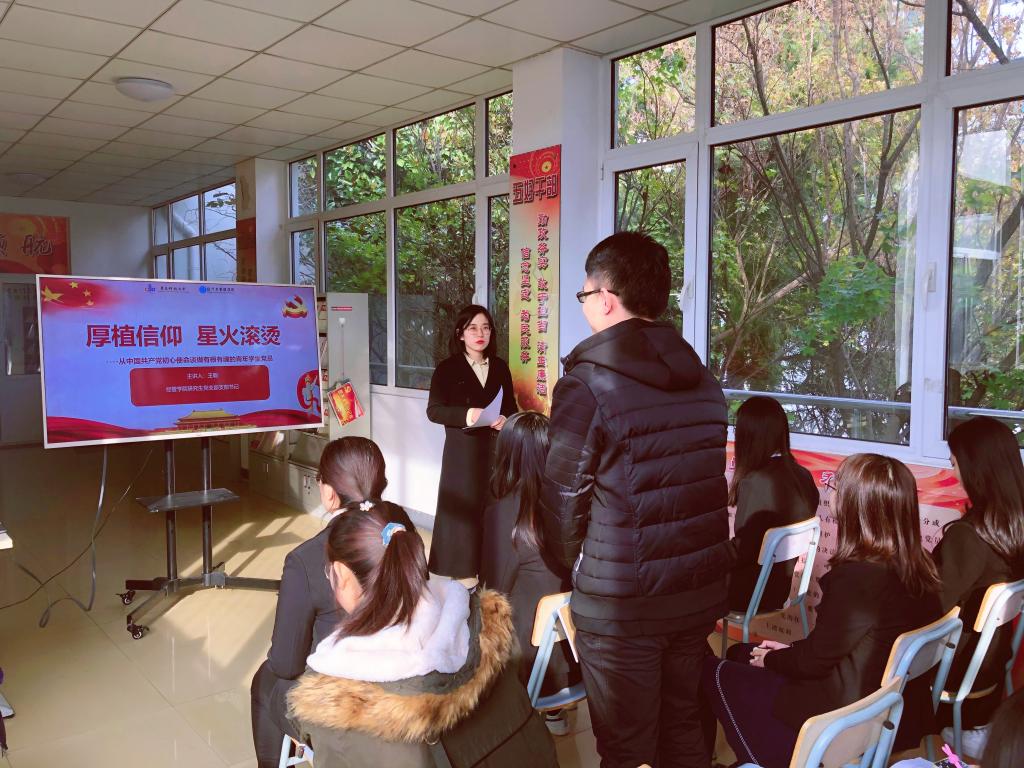 为深入学习贯彻党的十九届五中全会精神、深化“四史教育”,强化党支部堡垒建设以起到武装党员、教育党员、凝聚党员的作用,11月24日,ylzzcom永利总站于经管楼党建活动室举行“厚植信仰,星火滚烫”专题党课及“诵读红色经典,传承红色精神”主题朗读活动。