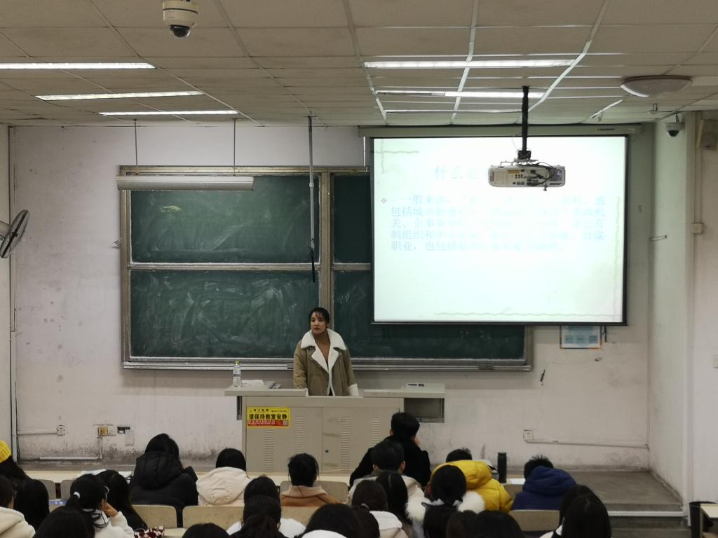 随后,张鸣首先以“毕业生就业的多重选择”为题,普及了基层就业的相关知识,分别就选拔条件、选拔时间、工作内容和福利待遇等方面重点讲解了老员工应征入伍、村官、特岗教师和西部计划志愿者四类就业途径。并着重强调了就业安全的问题,包括如何辨别虚假公司、虚假信息,避免无证据解聘、口头承诺、兼职刷单、传销等问题,并为同学们推荐了空中双选会、青鸟计划等招聘信息的获取途径。最后,她强调了疫情防控常态化形式下今日校园每日填报和青年大学习一周一学的重要性,提醒同学们提高自主意识,将防疫安全工作贯彻到底。