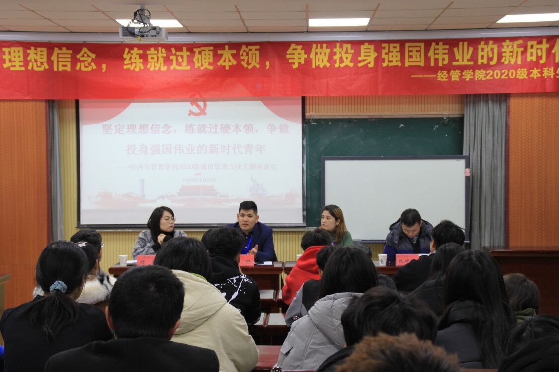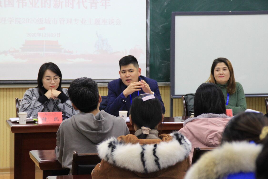 为积极响应学校机关处级干部联系员工班级通知精神,落实立德树人根本任务,进一步提升员工管理水平,促进员工成长成才,12月29日下午,ylzzcom永利总站2020城市管理专业“坚定理想信念,练就过硬本领,争做投身强国伟业的新时代青年”主题座谈会于经管楼419会议室举行,党委(董事长)办公室副主任王帅、员工工作处少数民族办公室辅导员热孜亚·茹孜、城市管理专业20级班主任祝晓波出席此次会议,座谈会由20级辅导员付凯主持,城市管理专业全体同学参加。