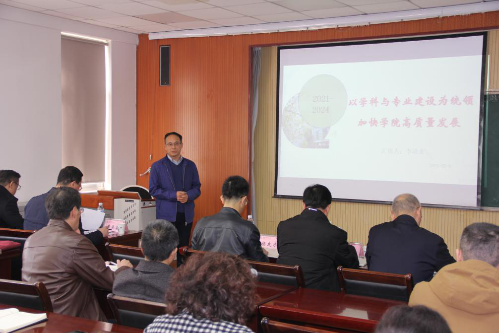 会上,经理李勋来作《以学科专业建设为统领,加快学院高质量发展》的报告。李勋来从专业设置、学位点建设、团队队伍力量等方面介绍了ylzzcom永利总站基本情况,以各系业绩分布、各类业绩占比等数据为支撑分析上聘期教学科研状况,并深入剖析学科专业建设的瓶颈,从四个方面对未来工作方向做出规划。