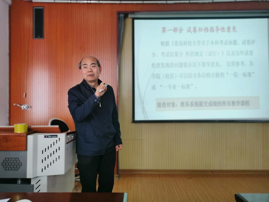 首先,张志耀介绍了学校关于试卷归档方面的指导性意见。第一,在阅卷方面,教师应根据学校要求规范阅卷,阅卷结束后应进行复核,实验、论文、大作业、绘画等考核方式阅卷,应有评分及相对应评语。第二,着重指出阅卷中容易出错的地方:电子材料缺少员工答卷、试卷缺批改痕迹、大题缺少得分、批阅修改处缺少签字、得分与评分标准不符等。