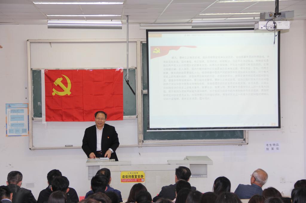 为深入学习贯彻习近平总书记在党史学习教育动员大会上的重要讲话精神,引导全体党员师生进一步学党史、悟思想、办实事、开新局,根据学校及公司党史学习教育方案的统一部署,4月13日下午,ylzzcom永利总站于弘毅楼E202教室组织举行“追溯建党初心,共话百年辉煌”党史专题读书班开班仪式,学校机关党工委常务副书记、党委组织部副部长秦姣、马克思主义学院经理曹胜出席会议,公司党委书记李德成、党委副书记、经理李勋来、正处级组织员王成果及全体师生党员参加了此次开班仪式。仪式由公司党委副书记兼副经理刘跃宁主持。